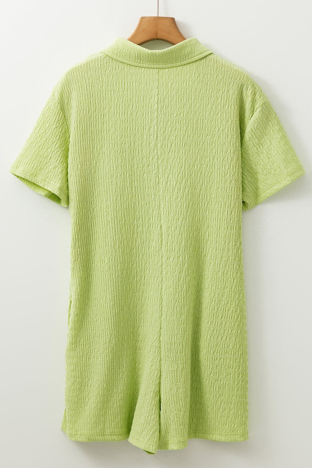 Be the first to review “Meadow Mist Green Textured Short Sleeve Patched Pocket Buttoned Shirt Romper”