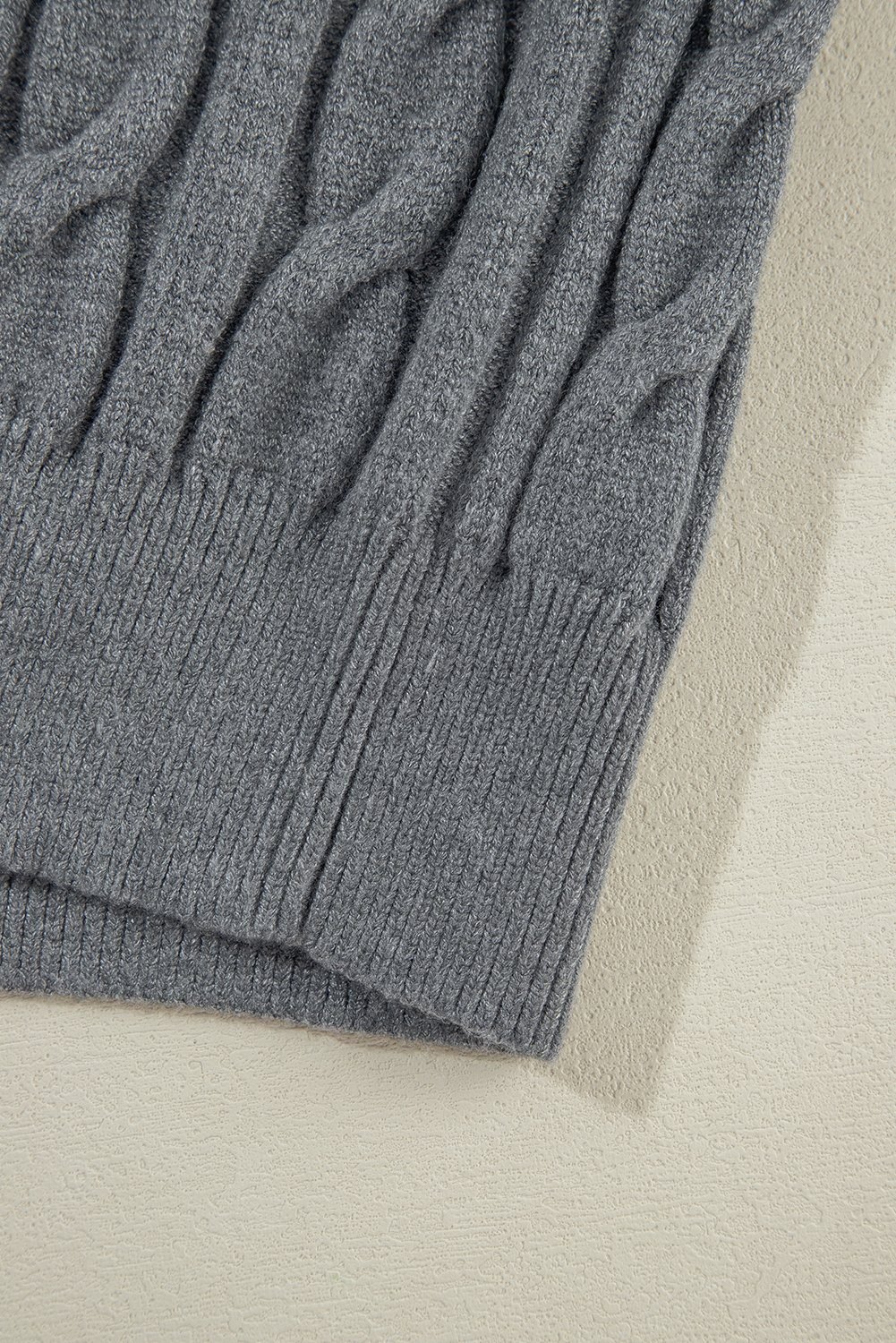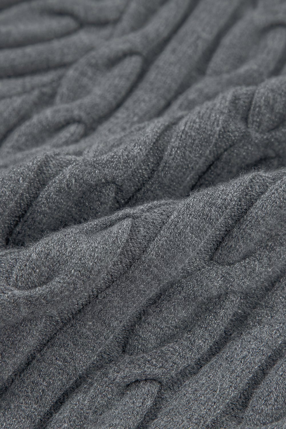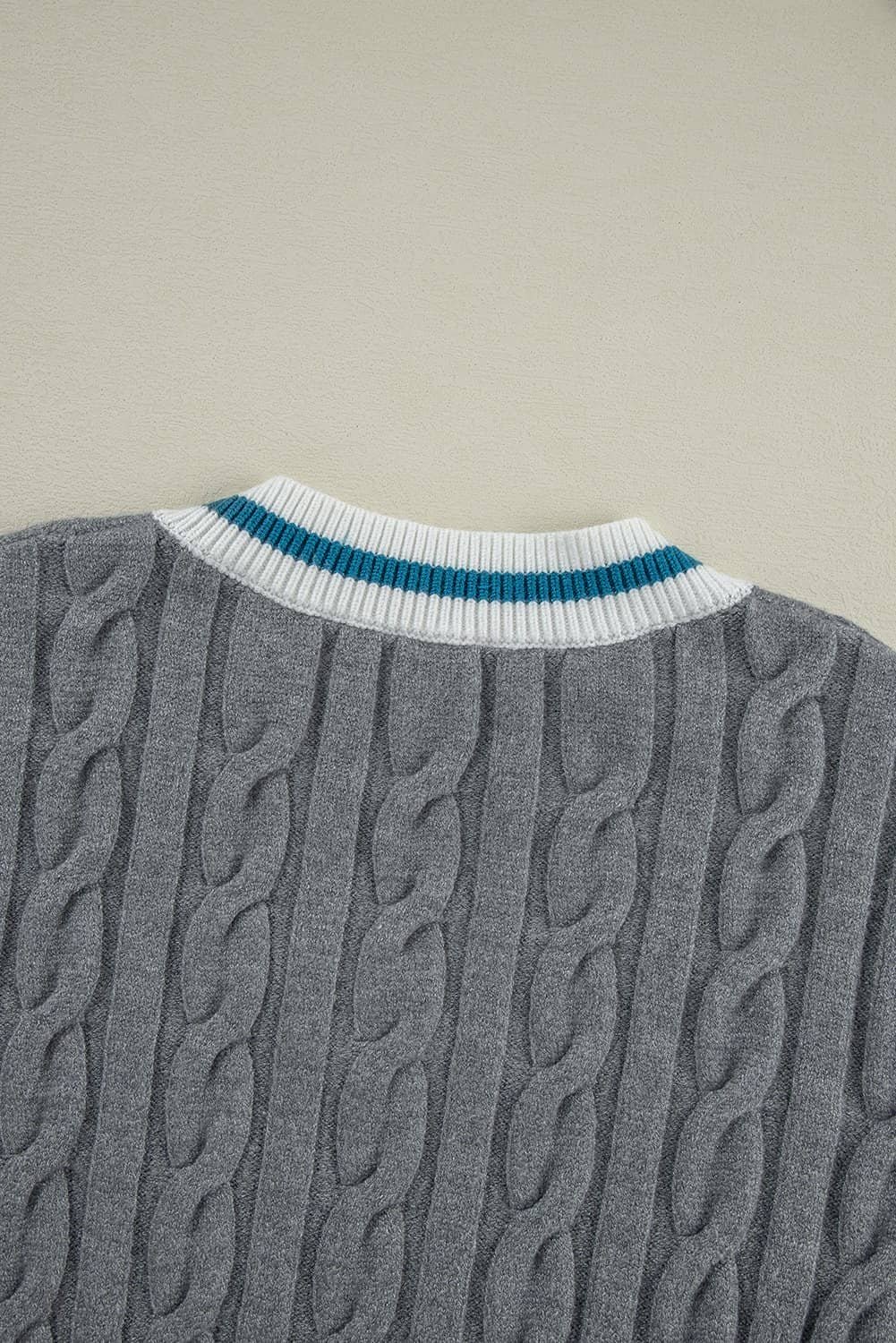 Medium Grey Color Contrast Ribbed Edge Cable Knit V Neck Sweater