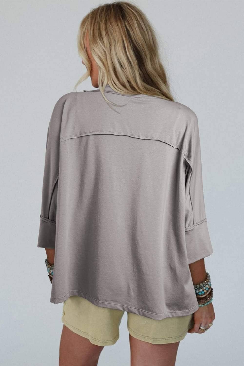3/4 sleeves offer a flattering silhouette and comfortable fit.