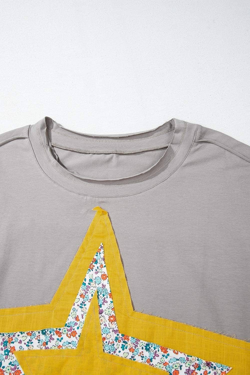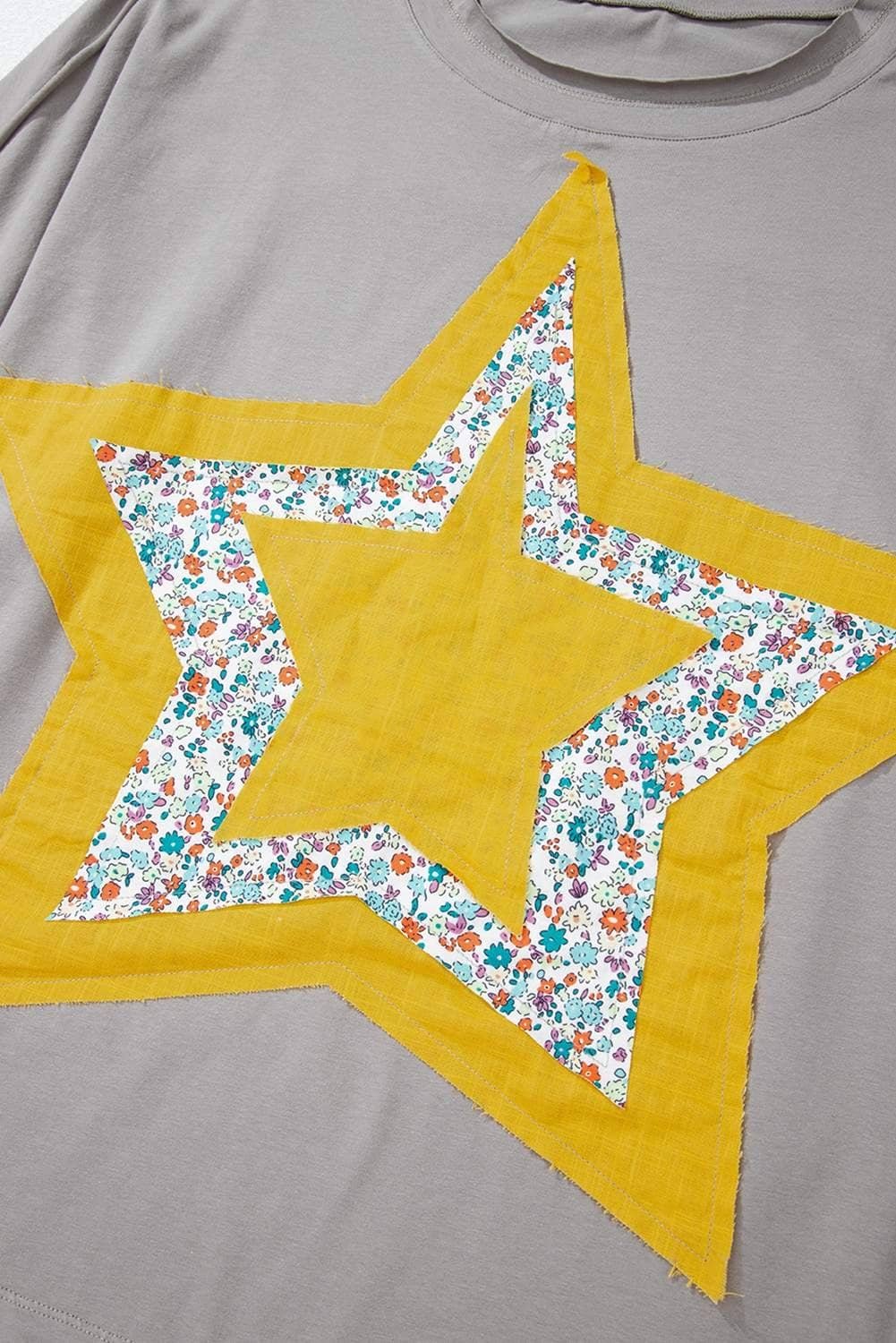 Medium Grey Floral Star Patched Pattern 3/4 Sleeve Plus Size Top