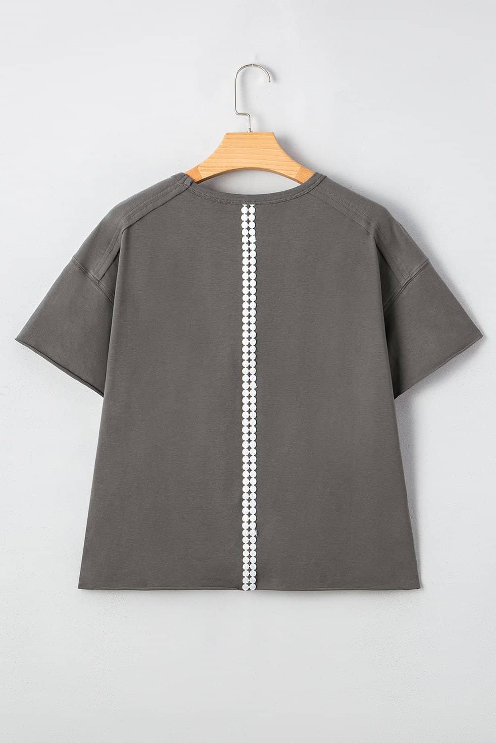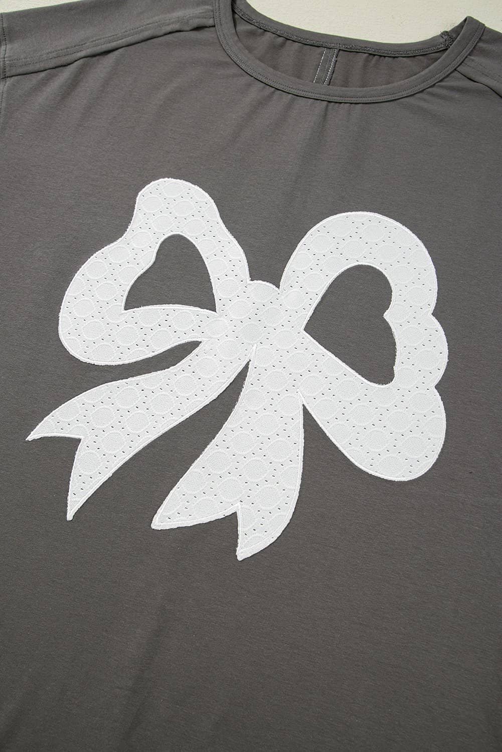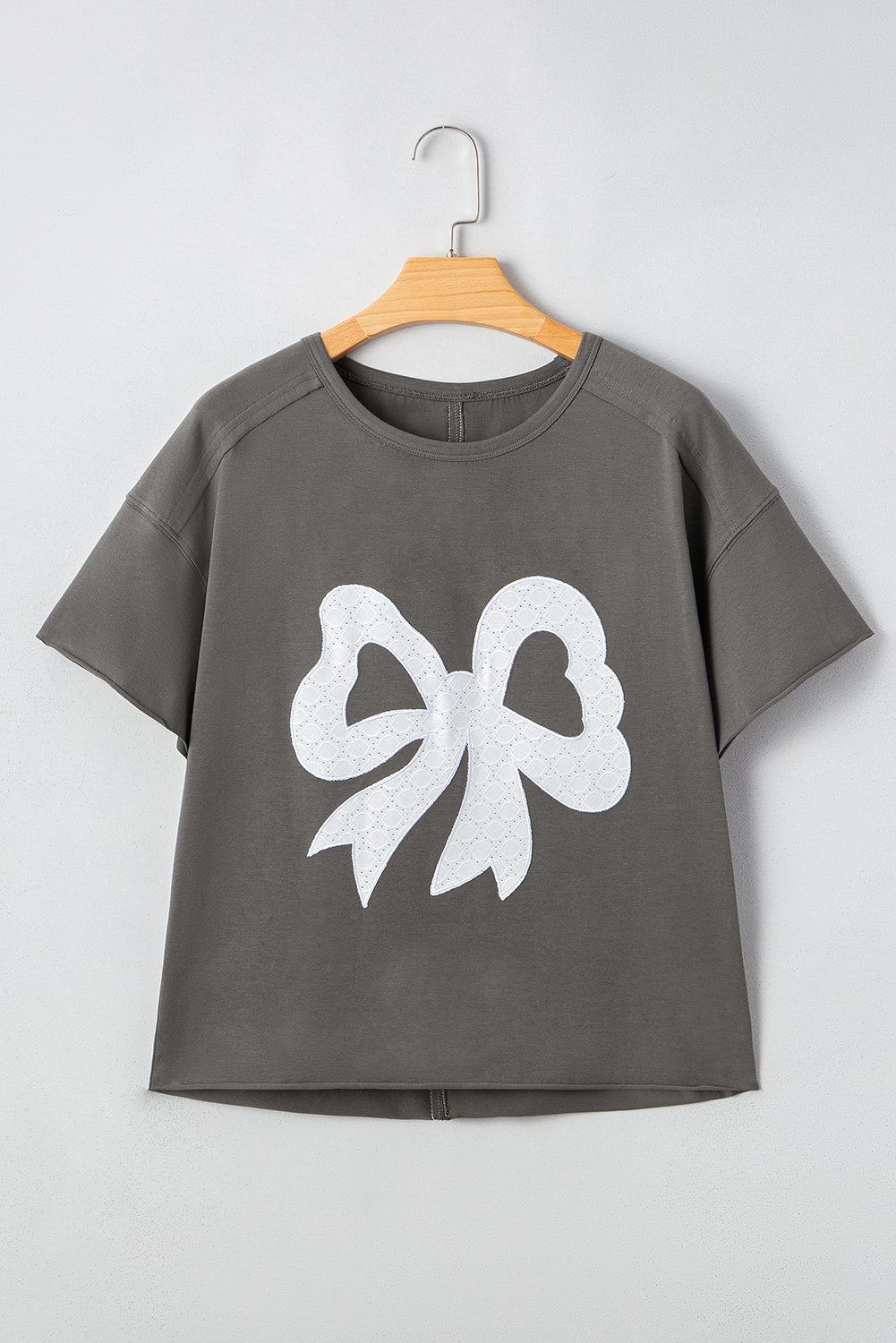 Be the first to review “Medium Grey Lace Bow Raw Edge Drop Shoulder Casual T Shirt”