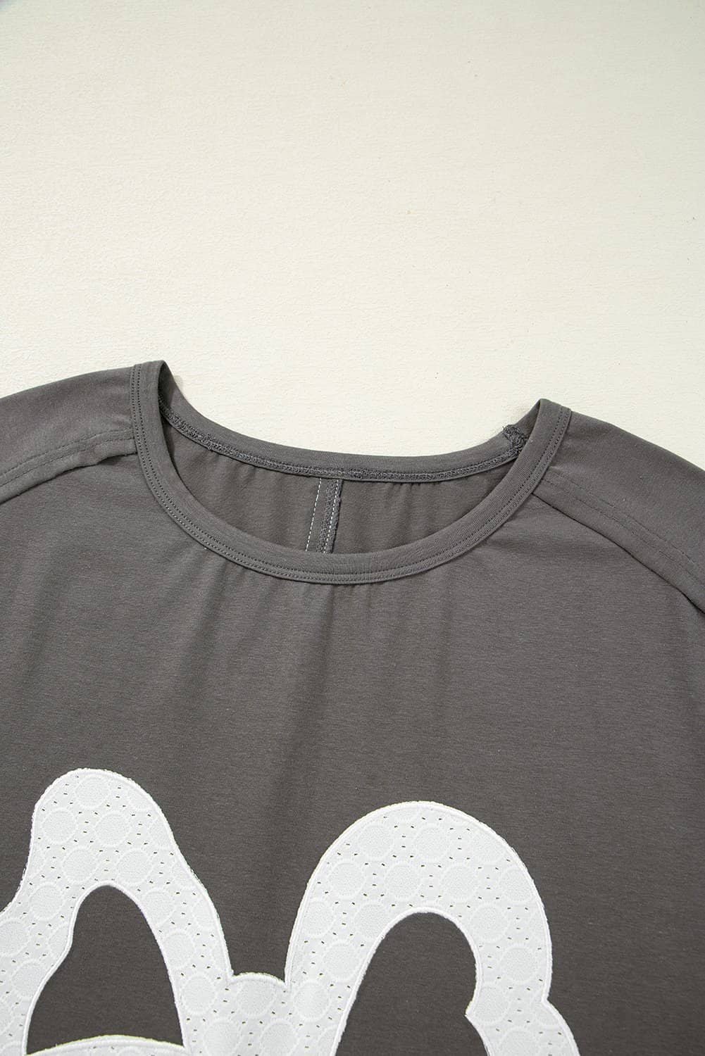 Medium Grey Lace Bow Raw Edge Drop Shoulder Casual T Shirt