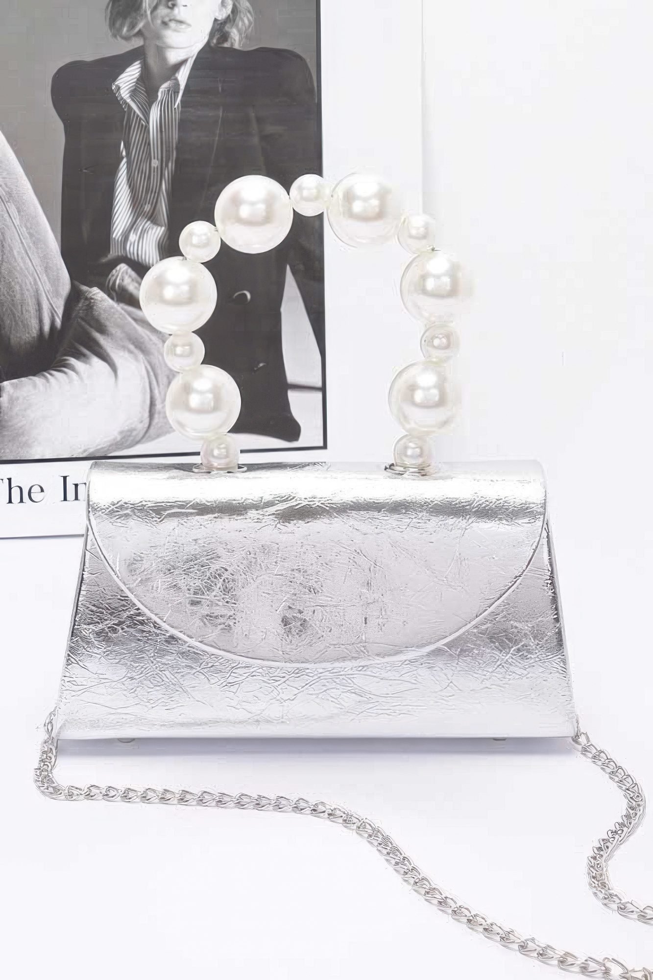 Product Description: Add a refined touch to your evening ensemble with the Metallic Pearl Handle Flap Bag. Designed with a sleek silhouette and elevated by a lustrous pearl-accented handle, this clutch is the epitome of understated glamour. The metallic finish adds just the right amount of shine, while the structured form keeps your essentials secure and stylishly stored. Whether you’re attending a formal event or a chic dinner, this piece brings elegance and charm to every occasion. Crafted with quality materials, it’s a timeless addition to your accessory collection. Product Details: Dimensions: 8″W x 4″H x 3″D Crafted from polyurethane with mixed metal accents Features a pearl-accented top handle for a luxe finish Structured flap design with a polished metallic exterior Ideal for evening events, parties, or special occasions Compact size perfect for carrying essentials like phone, keys, and lipstick Size Guide: For accurate sizing guidance, please review our size chart available on the website. Shipping and Returns: Fast Shipping: We offer speedy delivery to your doorstep. Hassle-Free Returns: If you’re not completely satisfied, our flexible return policy ensures your peace of mind.