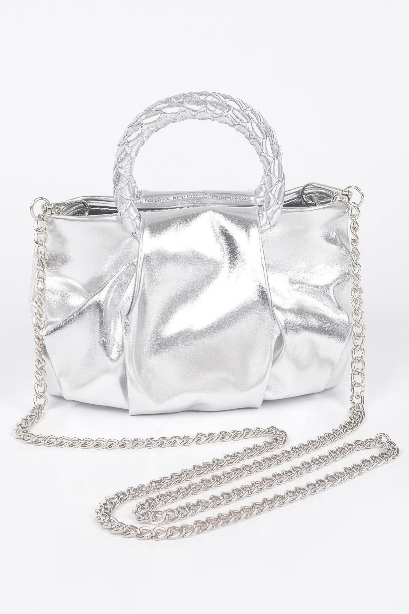 Product Description: Sleek and stylish, the Metallic Top Handle Crossbody Bag delivers contemporary sophistication with its lustrous finish and compact shape. It transitions seamlessly from day to night, offering versatile styling and a touch of shine. Product Details: Dimensions: 7W x 5H x 3D (approx.) Made from polyurethane and mixed metal Metallic finish with structured design Top handle and crossbody strap options Perfect for casual or dressy outings Size Guide: For accurate sizing guidance, please review our size chart available on the website. Shipping and Returns: Fast Shipping: We offer speedy delivery to your doorstep. Hassle-Free Returns: If you’re not completely satisfied, our flexible return policy ensures your peace of mind.