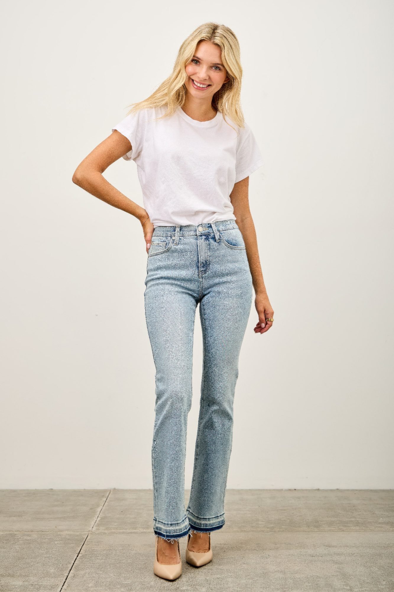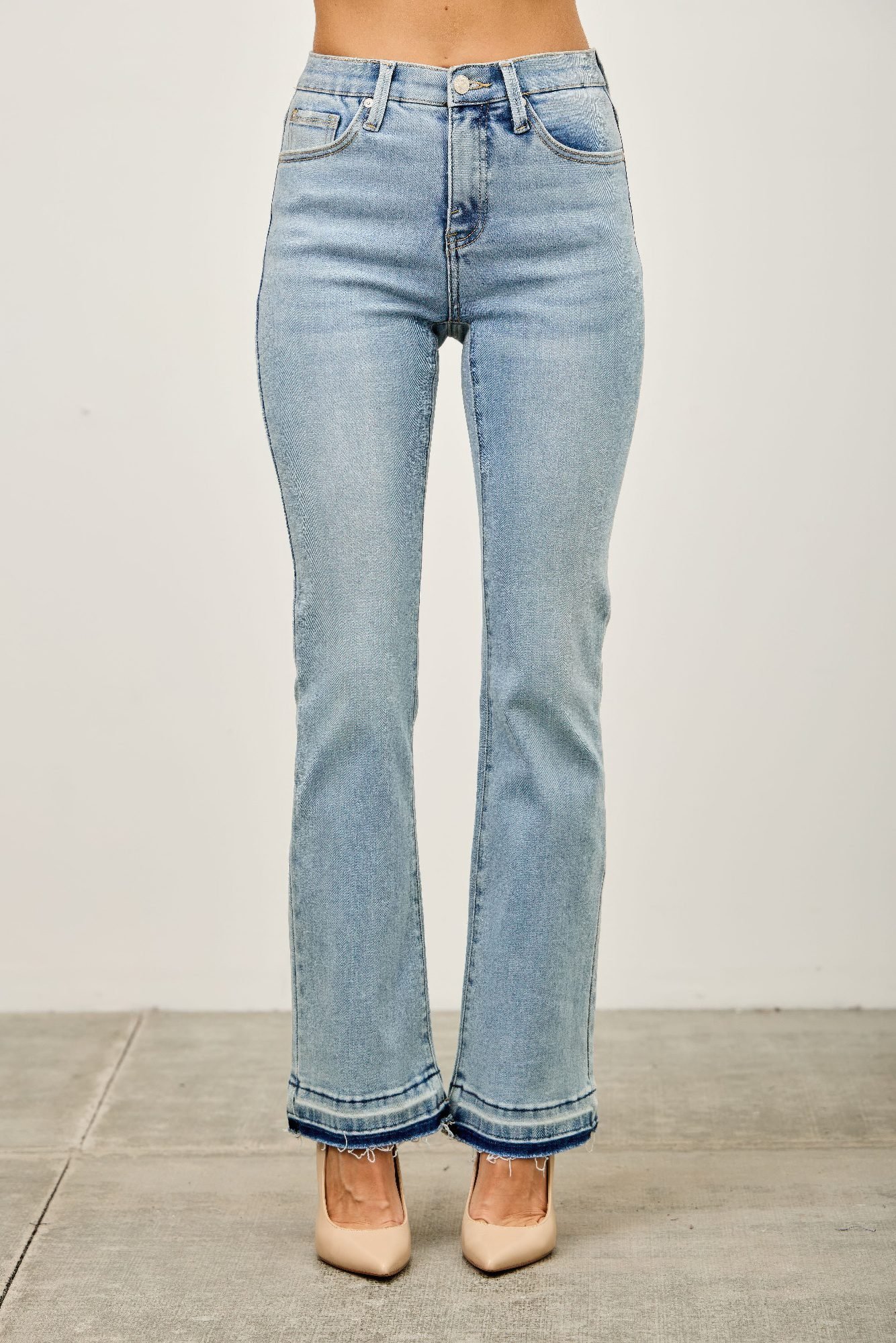 Product Description: Step into retro-inspired style with this modern take on the classic flare. These mid-rise jeans feature a soft stretch blend for a comfortable, flexible fit that moves with you. Designed with a subtly flared leg and a released hem, they offer a laid-back finish that feels effortlessly cool. The classic 5-pocket styling and zipper fly keep the look timeless, while the raw hem adds a hint of edge. Whether dressed up with heels or styled casually with sneakers, these flares bring versatile style to any wardrobe. Product Details: 74% Cotton, 24% Polyester, 2% Spandex Mid-rise fit with flared leg Stretch fabric for comfort and flexibility Released hem for a relaxed, modern finish Zipper fly with classic 5-pocket construction Perfect for pairing with boots, heels, or sneakers Size Guide: For accurate sizing guidance, please review our size chart available on the website. Shipping and Returns: Fast Shipping: We offer speedy delivery to your doorstep. Hassle-Free Returns: If you’re not completely satisfied, our flexible return policy ensures your peace of mind.