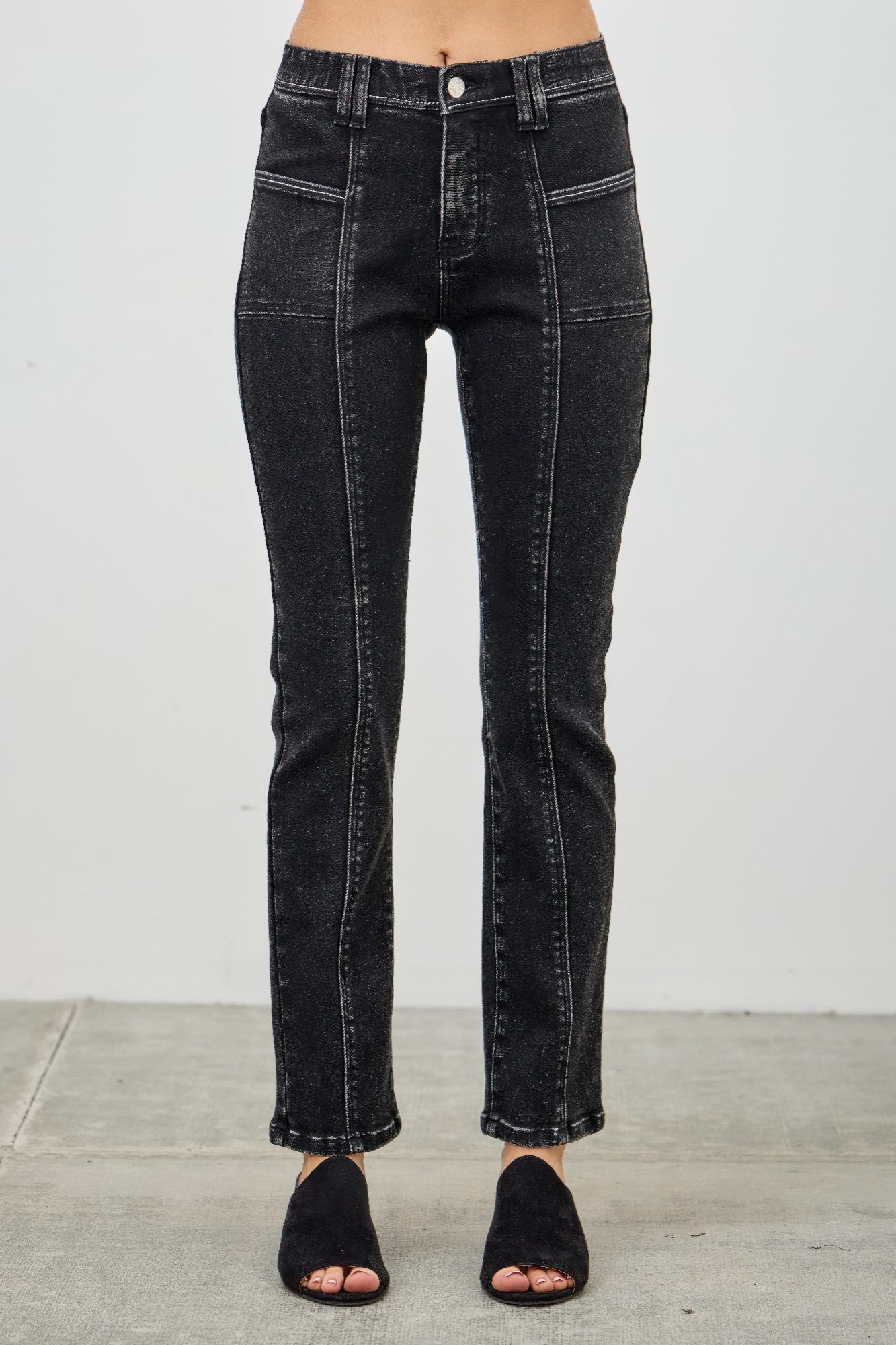 Product Description: Edgy and versatile, these mid rise slim straight jeans in black acid wash offer a sleek alternative to classic denim. Designed with a flattering mid rise and a slim straight leg, they create a streamlined silhouette that pairs effortlessly with everything from boots to sneakers. The subtle stretch ensures comfort and ease of movement, while the black acid wash adds depth and attitude. Finished with classic five-pocket styling and a zip fly, these jeans are a go-to for everyday edge and casual cool. Product Details: 63% Cotton, 32% Polyester, 3% Viscose, 2% Spandex Stretch denim for comfort and flexibility Mid rise fit with slim straight leg Black acid wash for a worn-in, vintage look Classic five-pocket design with zipper fly Ideal for everyday wear with a touch of edge Size Guide: For accurate sizing guidance, please review our size chart available on the website. Shipping and Returns: Fast Shipping: We offer speedy delivery to your doorstep. Hassle-Free Returns: If you’re not completely satisfied, our flexible return policy ensures your peace of mind.