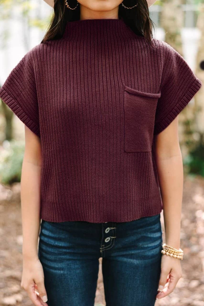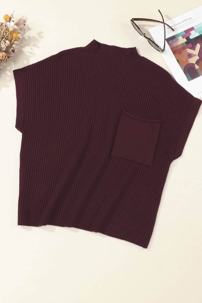 Be the first to review “Mineral Red Patch Pocket Ribbed Knit Short Sleeve Sweater”