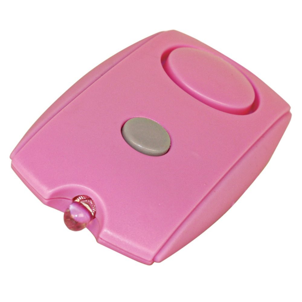 The Mini Personal Alarm LED Flashlight with Belt Clip can be attached to a keychain. It has a very sleek and compact design, but don?t let its small stature fool you. This easily activated alarm will emit an ear piercing 120dB alert that will send your aggressor fleeing for the confines of a sound proof room. You can deactivate this alarm just as easily as you activated it, with the click of a perfectly located button. This alarm fits easily in your pocket, purse, can be clipped onto your belt, or attached to a key chain. The built in LED flashlight allows you to shed some light on any situation. Anyway you chose to carry it, it will be nothing but beneficial to your safety. Uses 3 replaceable LR44 batteries (included). Available in 2 colors Black and Pink measures 3″ x 1 1/2″ x 1/2″.