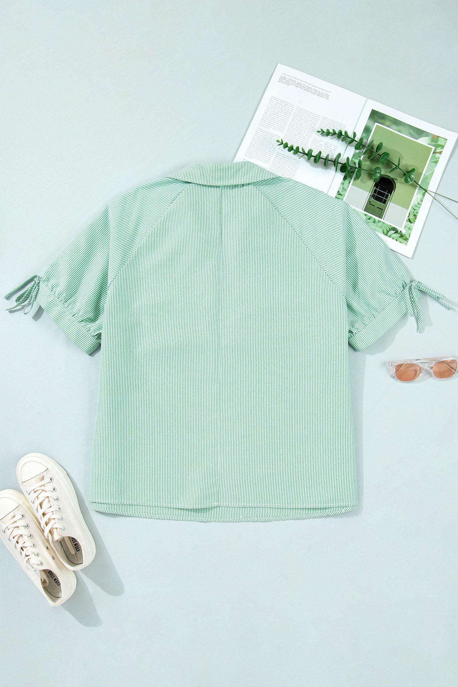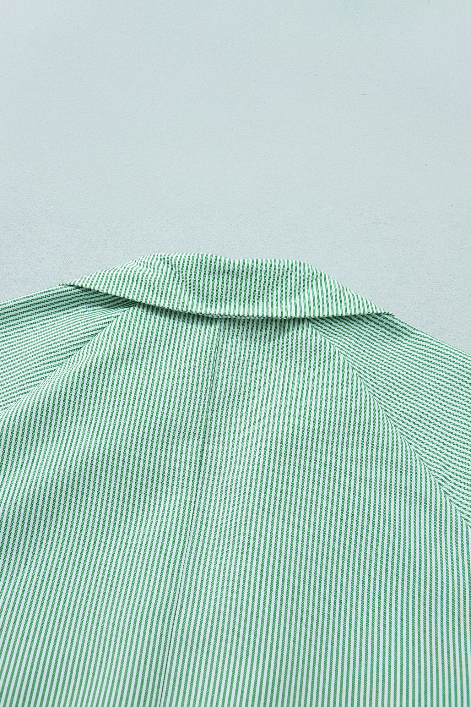 Mint Green Plus Size Striped Print Collar V Neck Short Sleeve Blouse