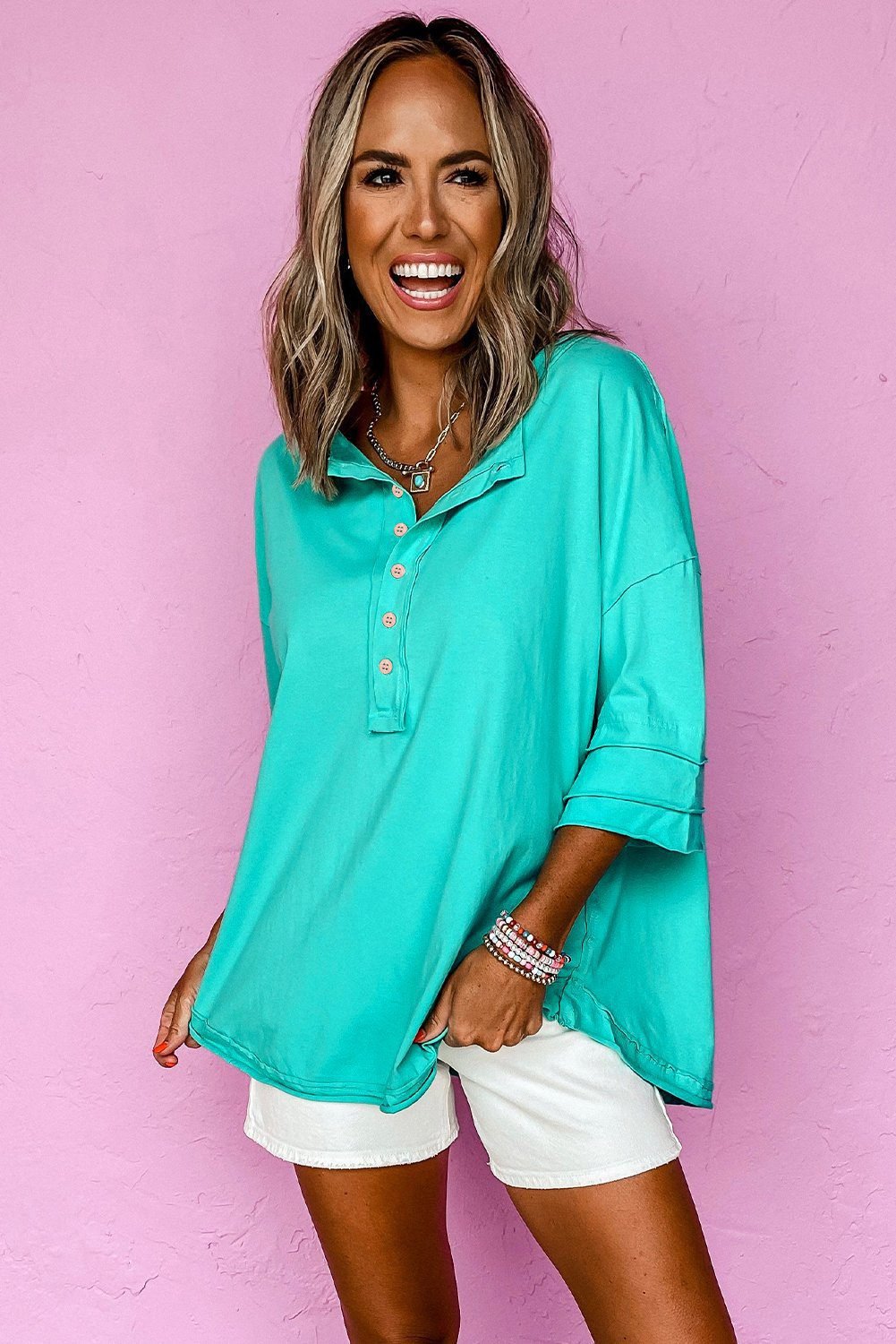 Add a touch of detail and charm with a buttoned Henley style featuring a classic collar.