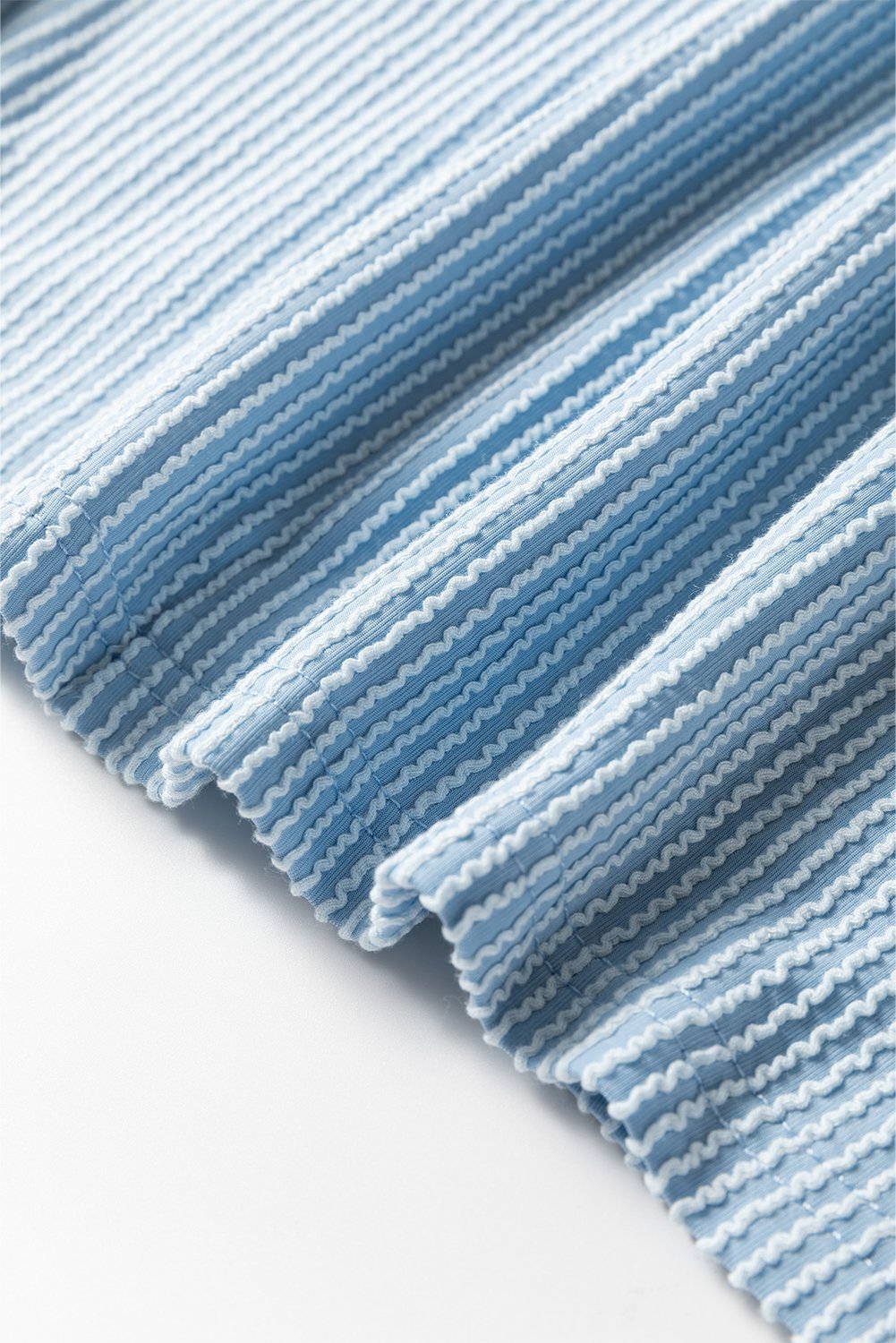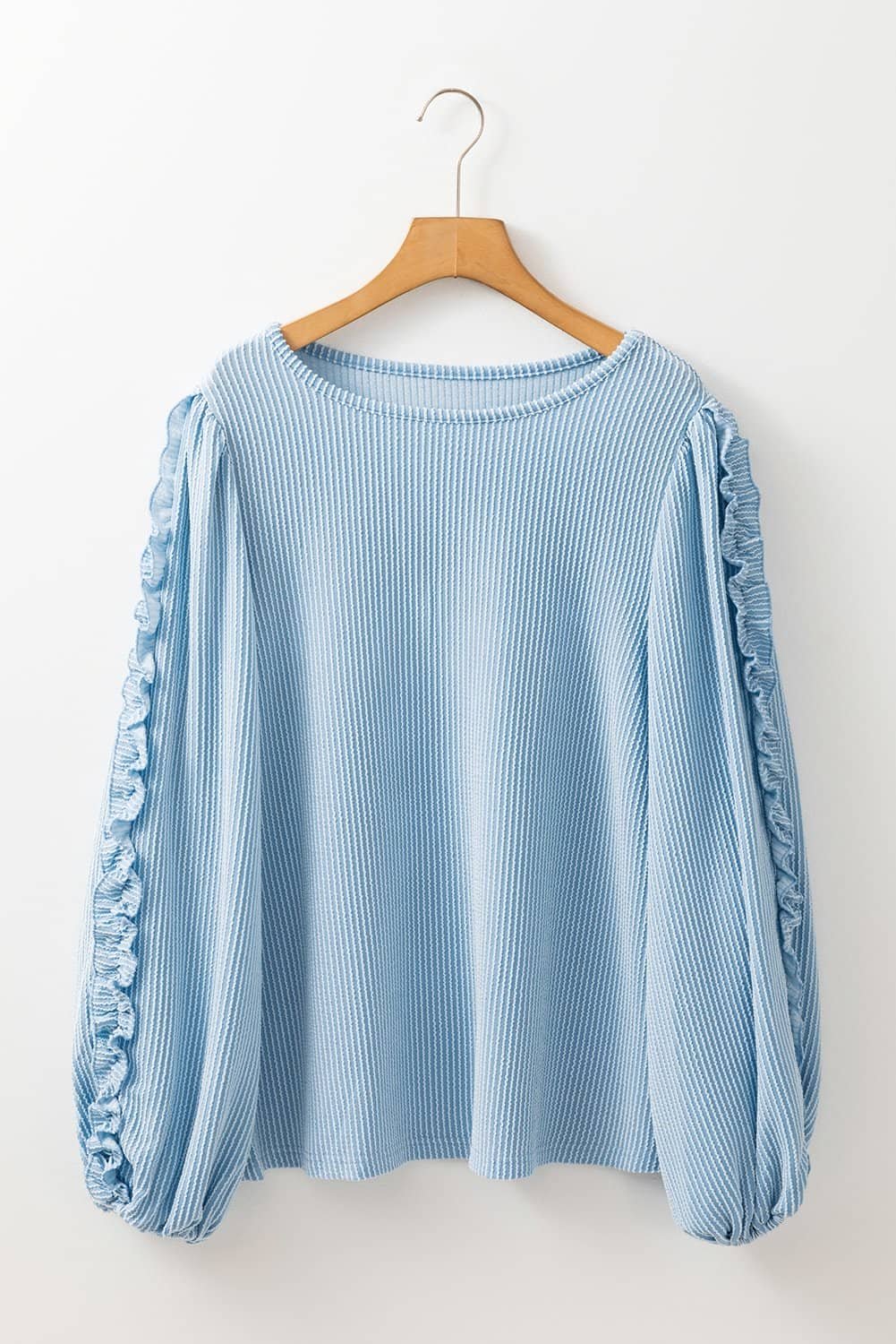 Mist Blue Corded Frilly Puff Sleeve Round Neck Blouse