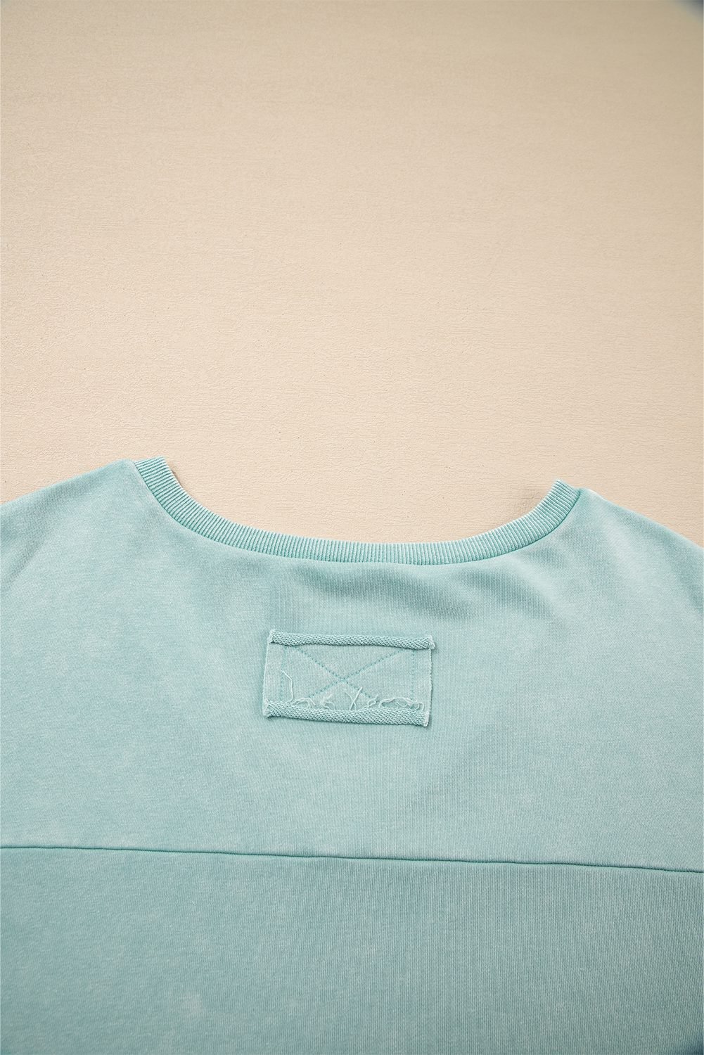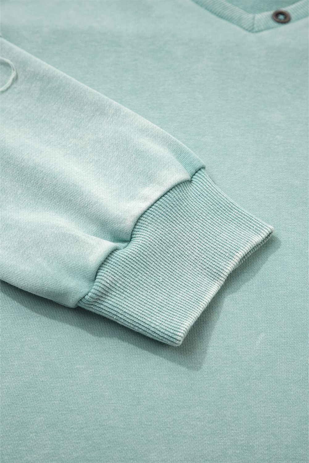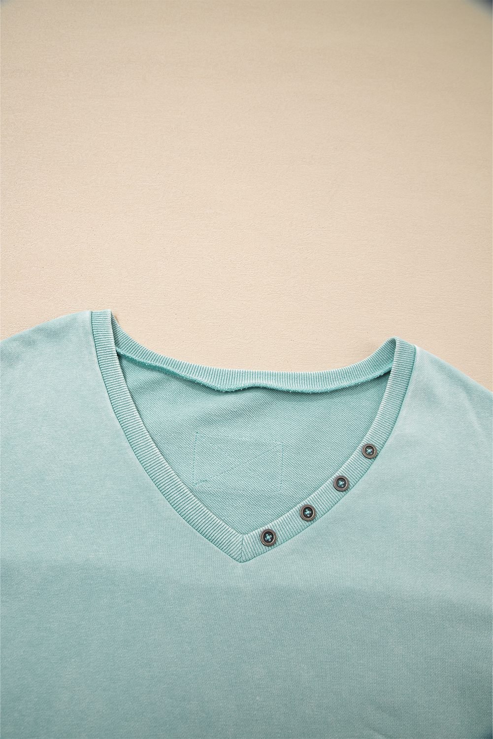 Be the first to review “Mist Blue Mineral Wash Exposed Seam Buttoned V Neck Pullover Top”