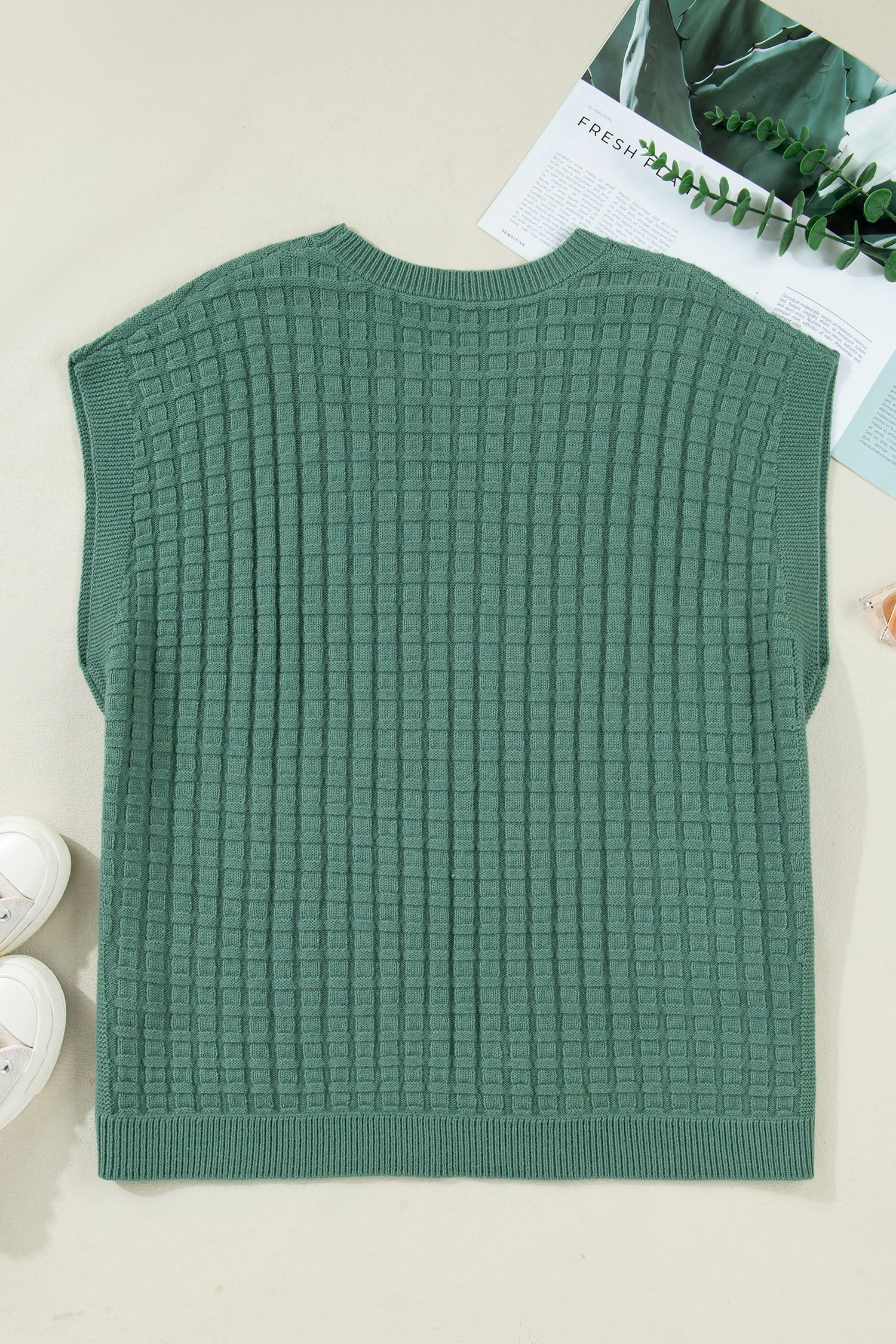 The short sleeve knit sweater is suitable for summer styling.