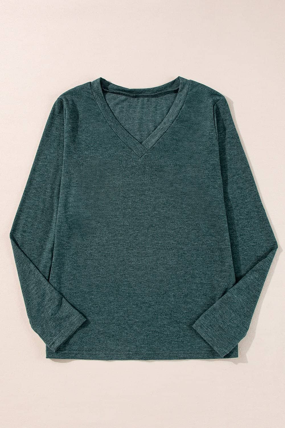 Be the first to review “Mist Green Solid Color Long Sleeve V Neck Top”