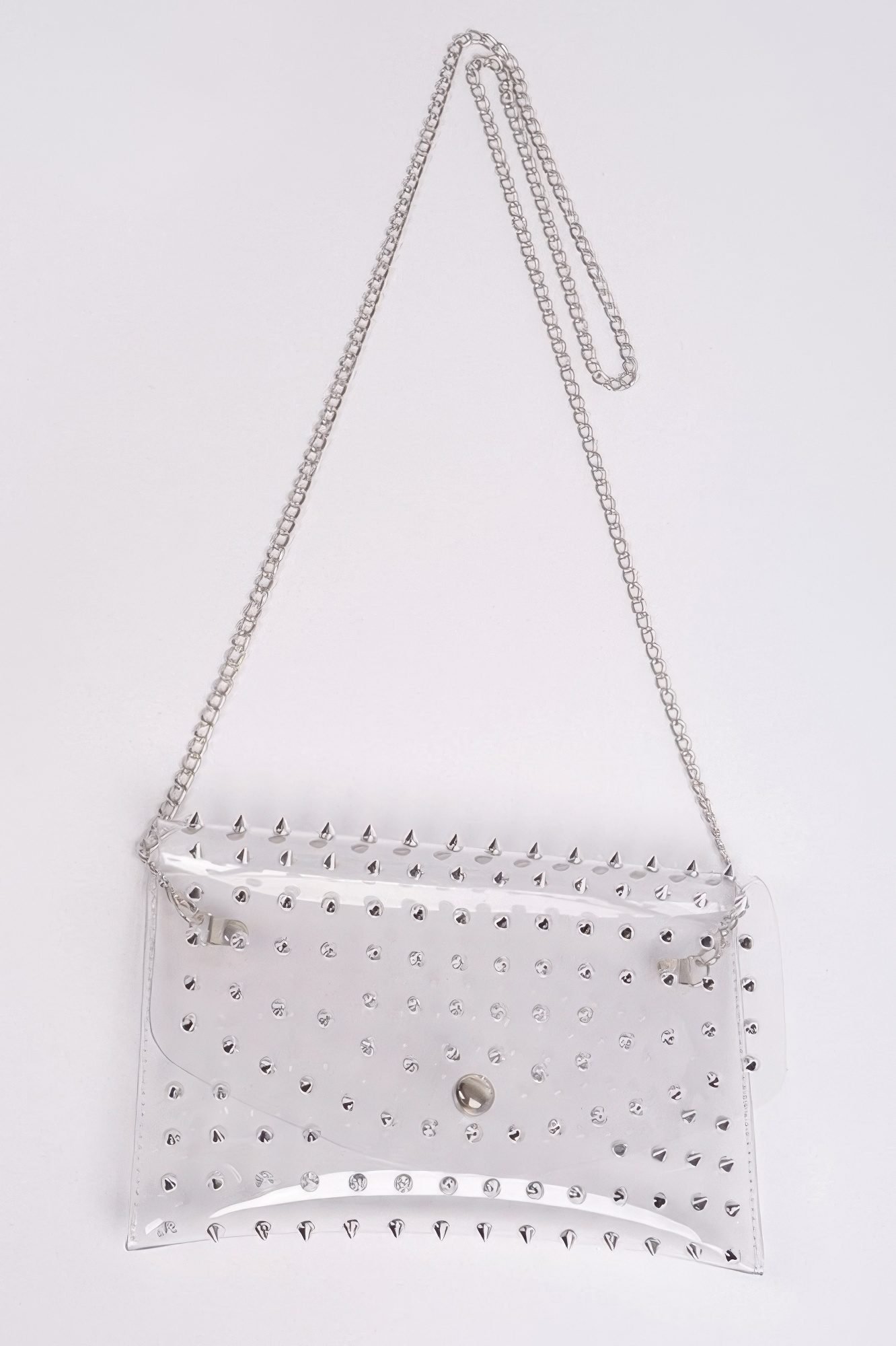 Product Description: Turn heads with the Multi-Stoned Cross Body Chain Strap Visible Clutch. This bold piece features a transparent design and vibrant multi-stone embellishments, offering a modern blend of glamour and edge. It’s perfect for trendsetters who love a standout accessory. Product Details: Dimensions: 8.75W x 5.5H (approx.) Made from polyurethane and mixed metal Clear body with colorful stones Crossbody chain strap included Eye-catching and unique design Size Guide: For accurate sizing guidance, please review our size chart available on the website. Shipping and Returns: Fast Shipping: We offer speedy delivery to your doorstep. Hassle-Free Returns: If you’re not completely satisfied, our flexible return policy ensures your peace of mind.