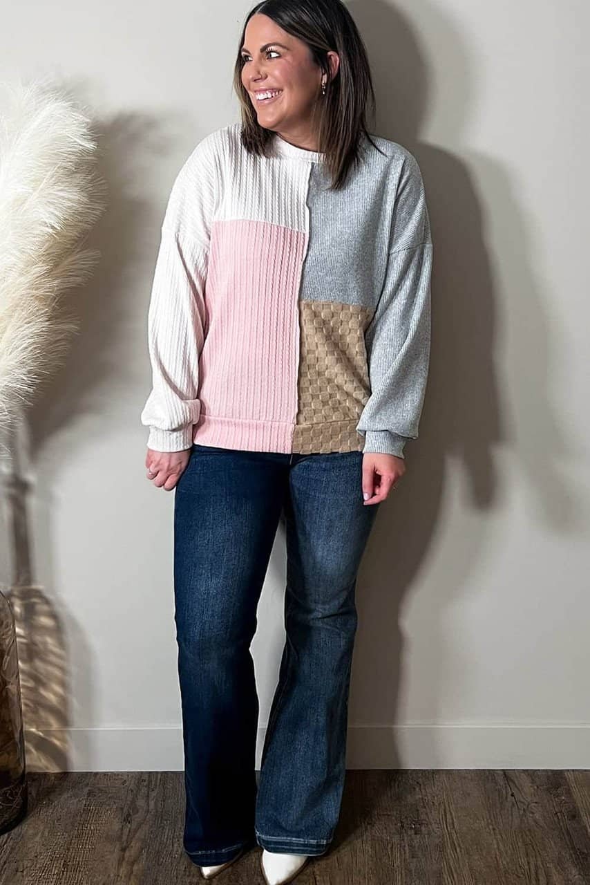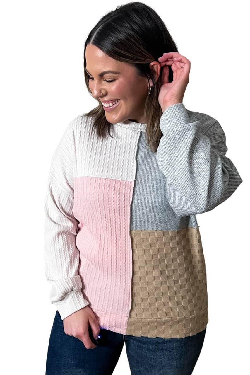 - Color-block design paired with cable knitting looks vibrant and delicate
