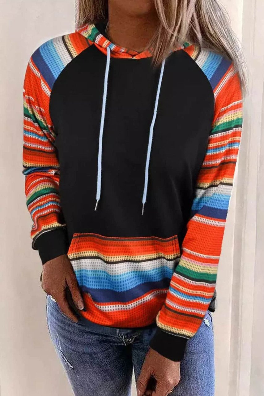 - Striped raglan sleeves, hood back and kangaroo pocket splicing