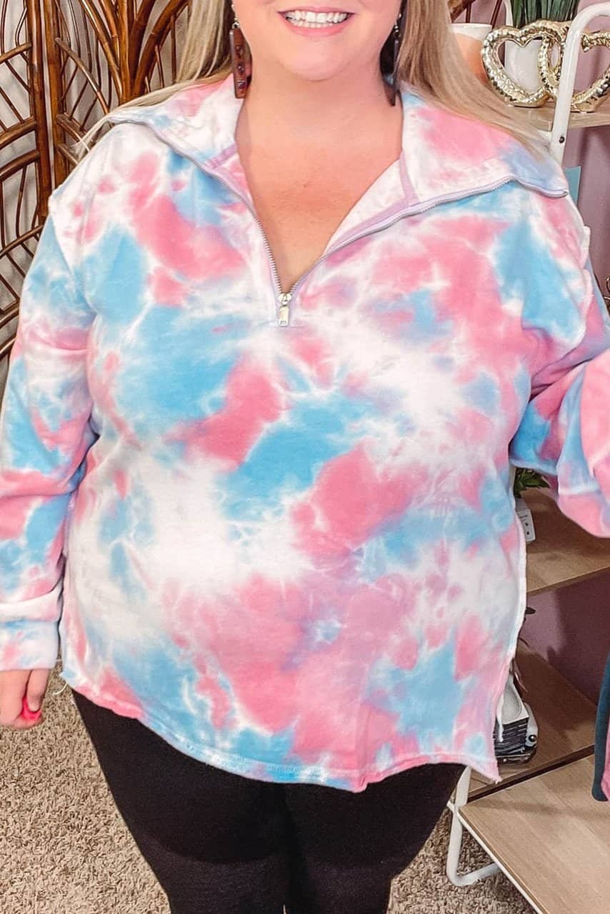 - This plus sweatshirt is apart from other pieces with its unique tie-dye print