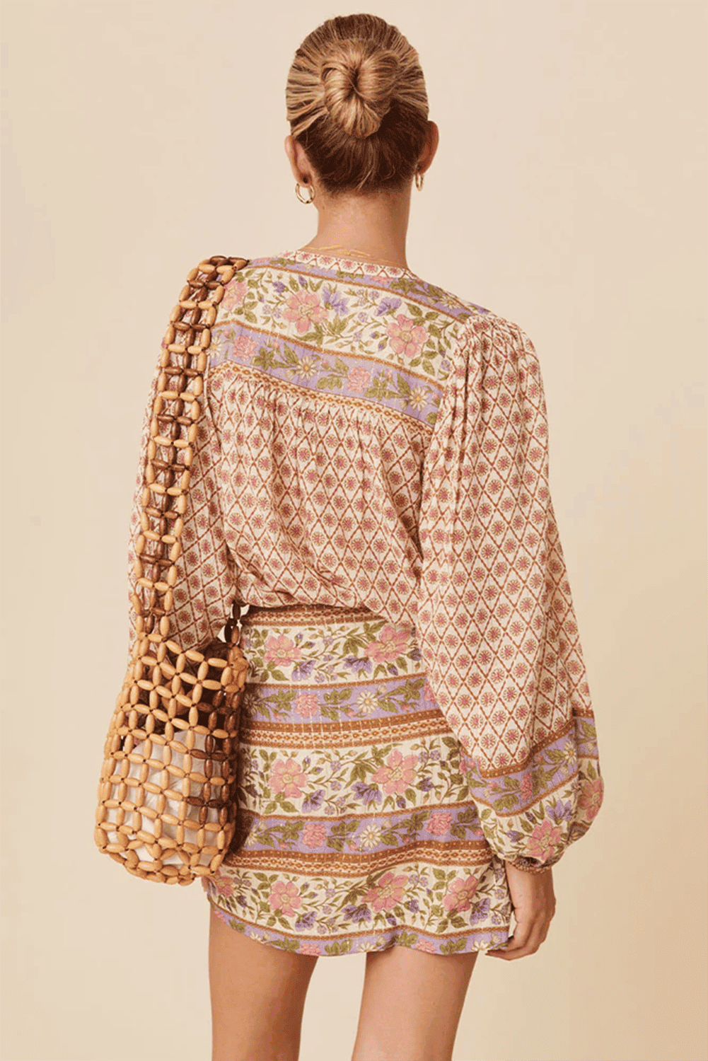 Multicolour Boho Floral Mixed Print Puff Sleeve Shirt