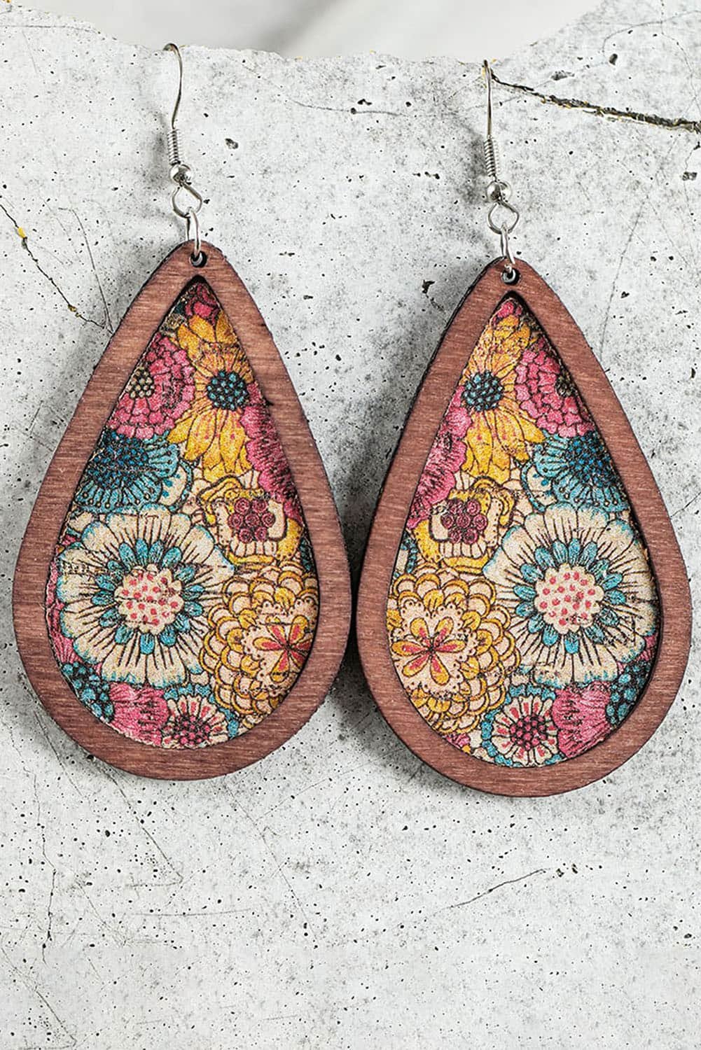 Multicolour Contrast Trim Floral Print Drop Earrings