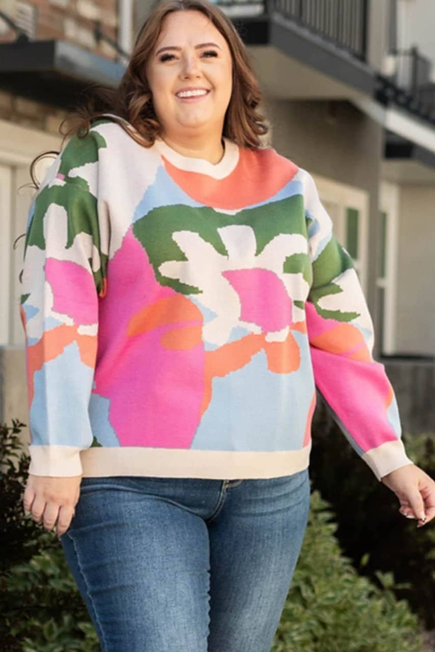Multicolour Plus Size Floral Drop Shoulder Sweater