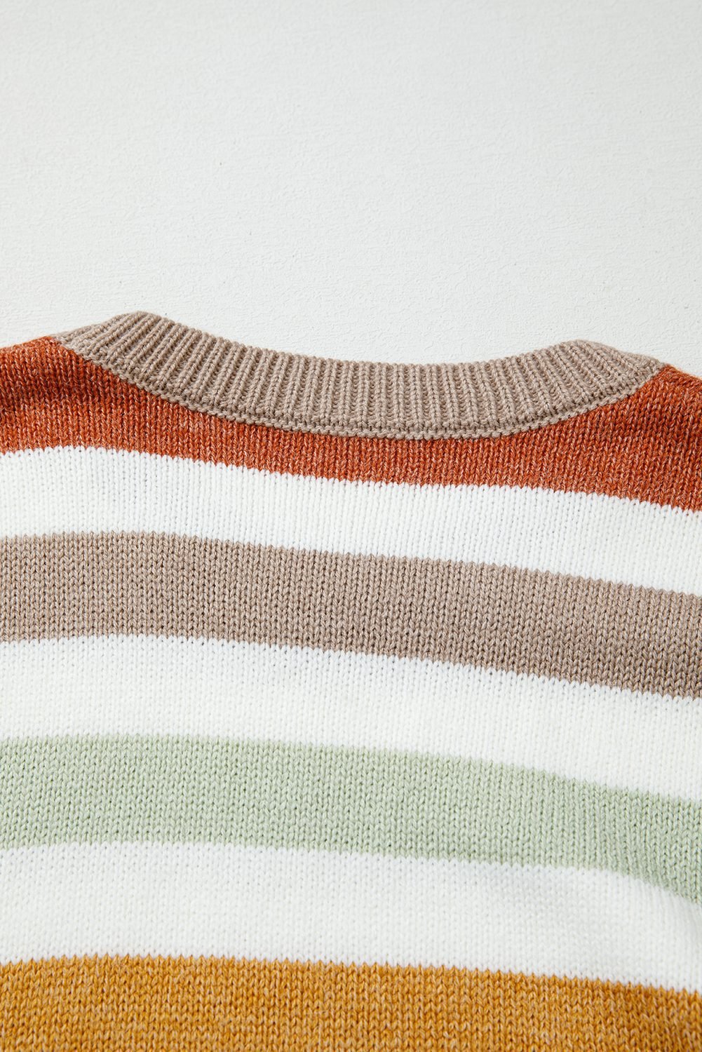 Multicolour Striped Colorblock Drop Shoulder Plus Size Sweater