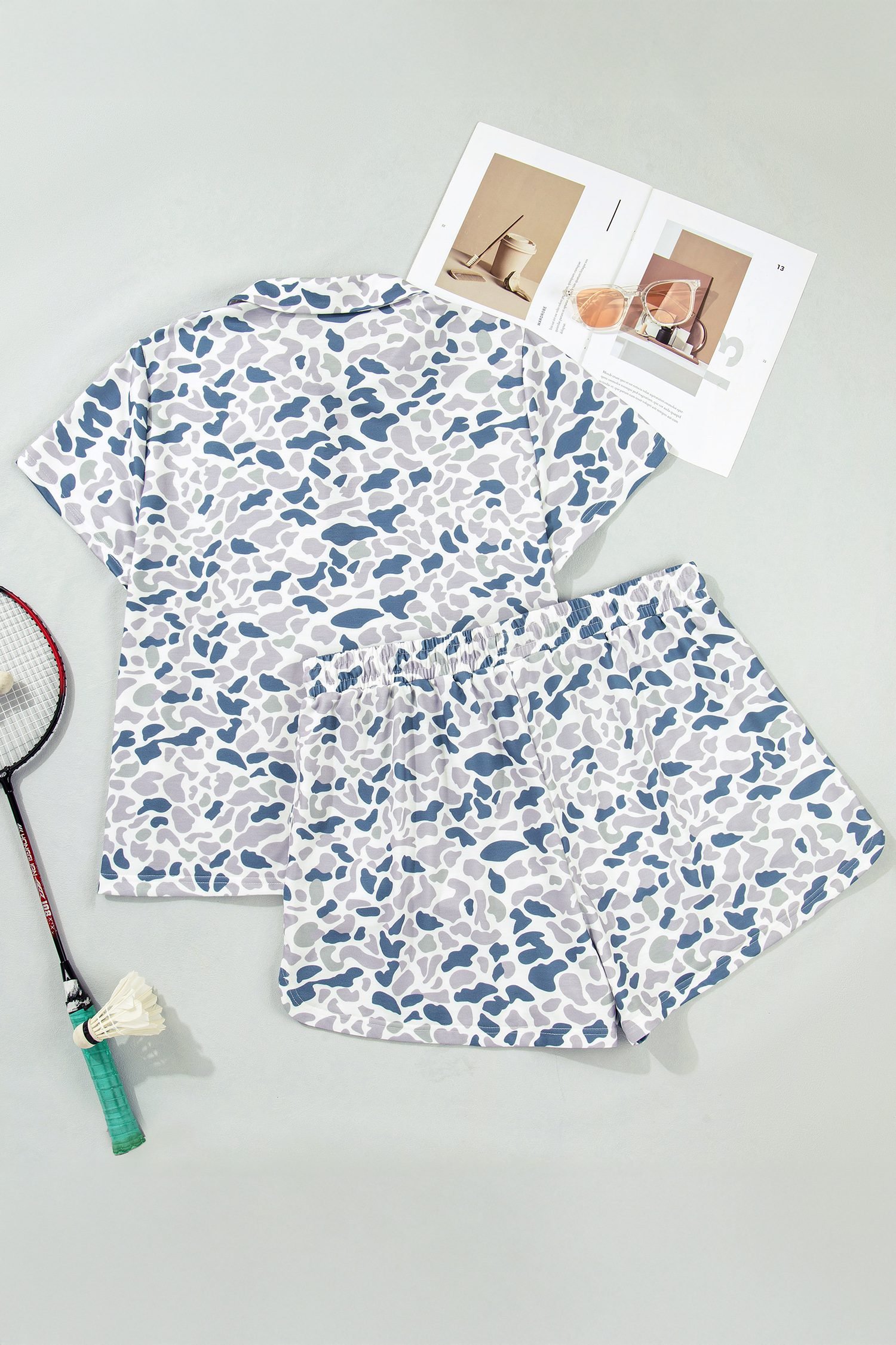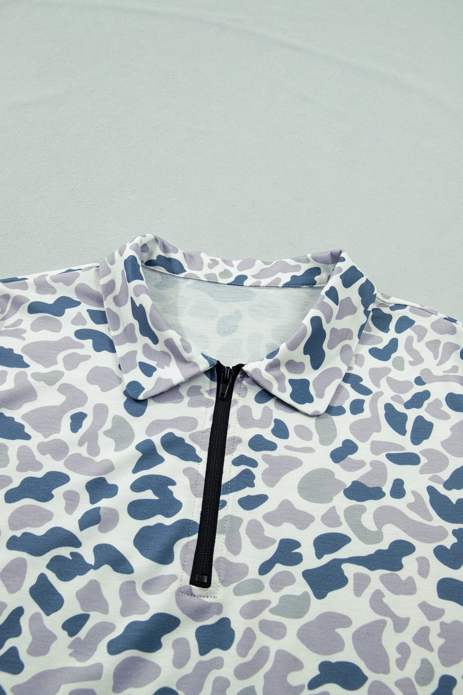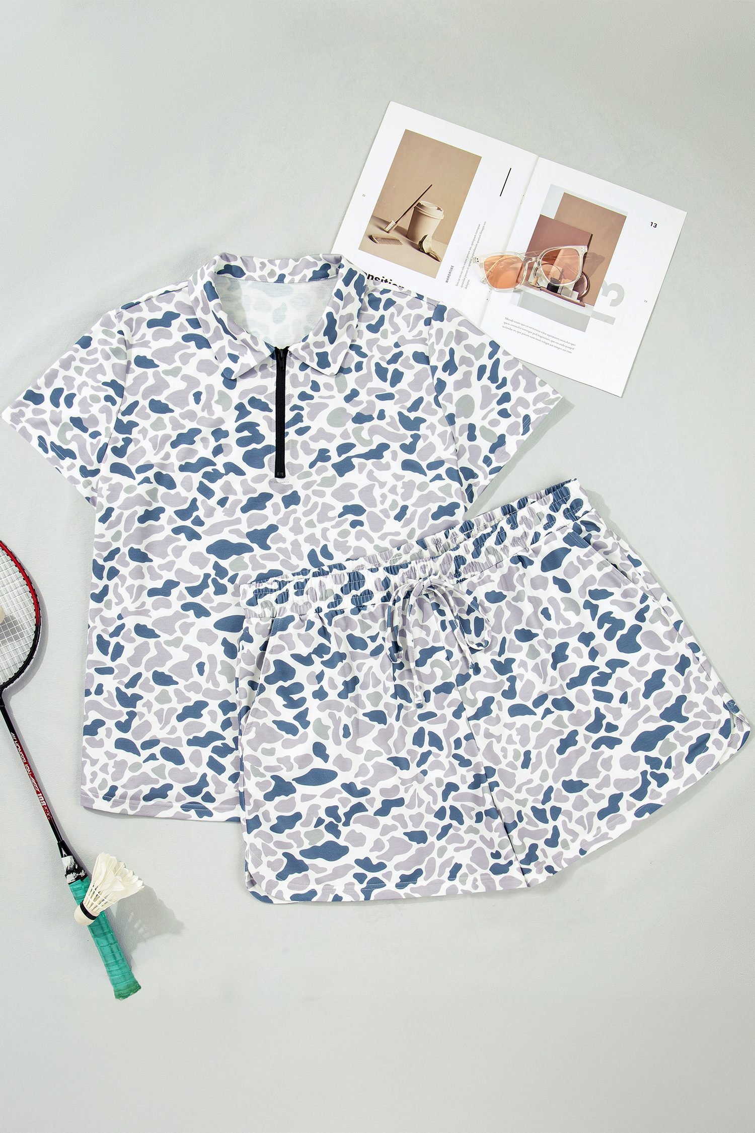 Includes a short-sleeve quarter-zip top and drawstring shorts.