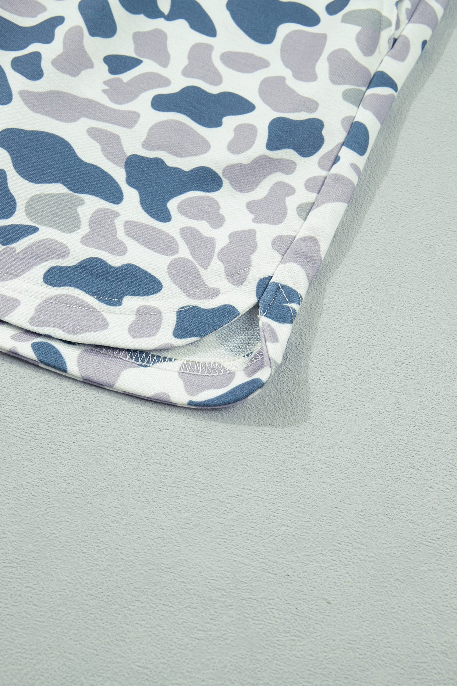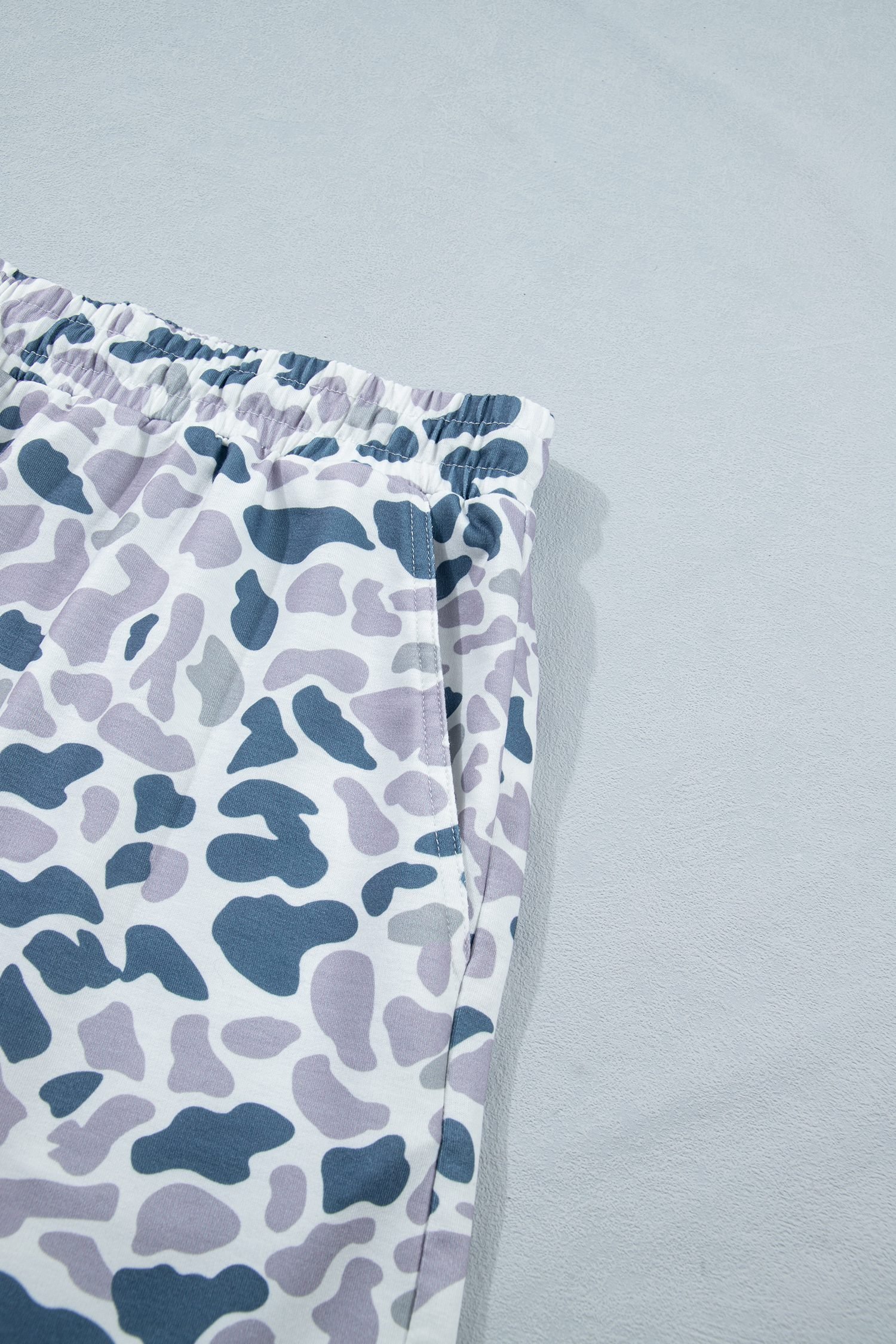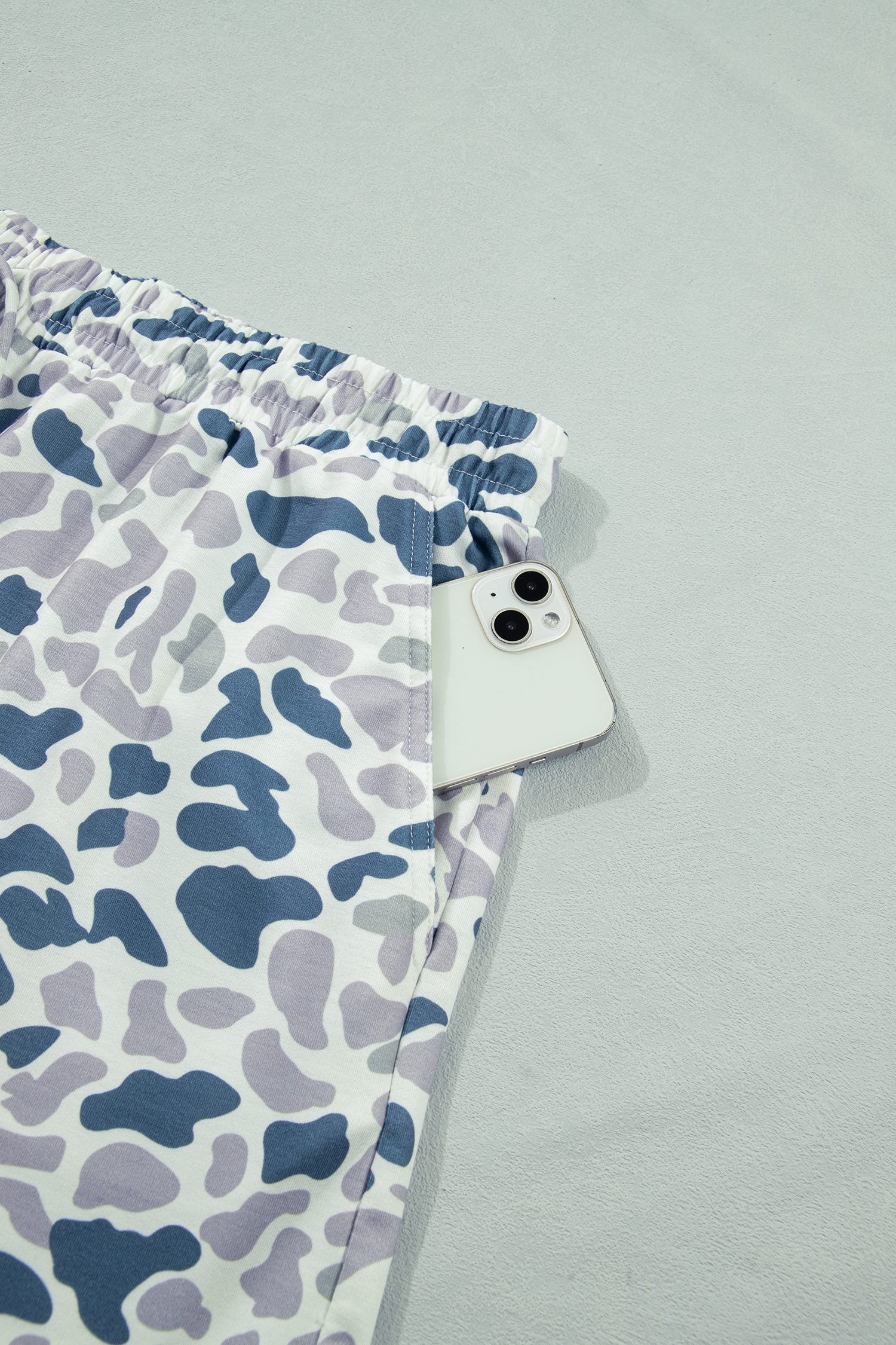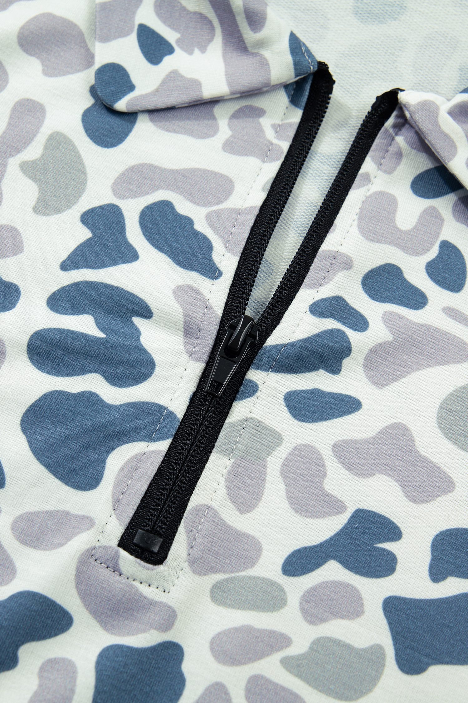 Includes a short-sleeve quarter-zip top and drawstring shorts.