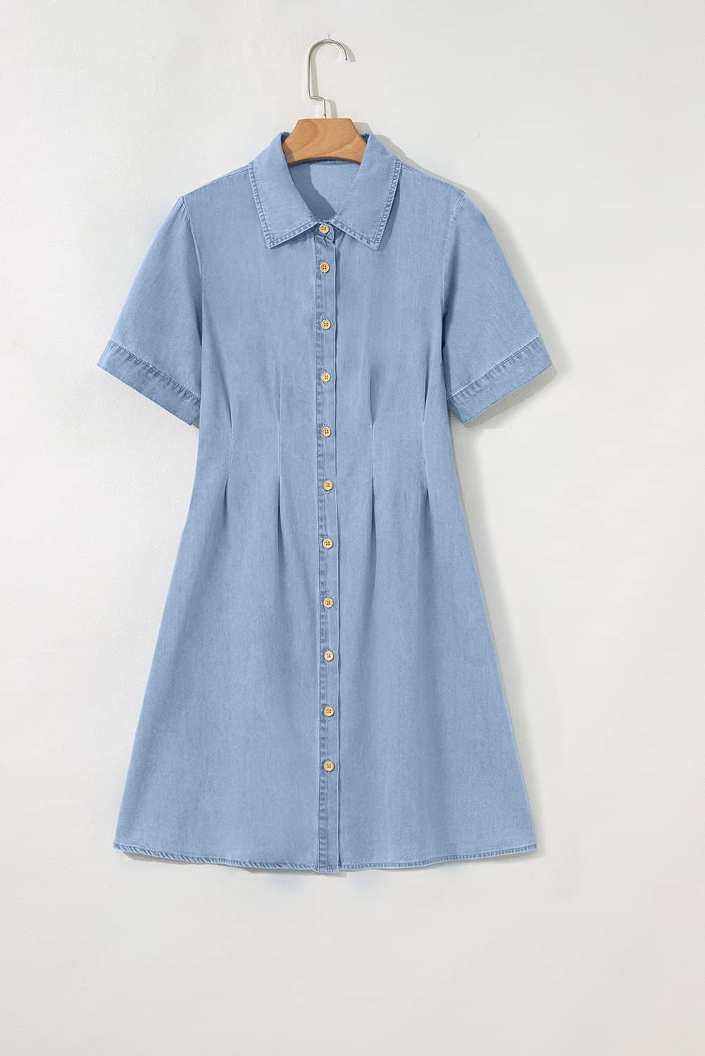 This denim dress is light and comfy with fine fabric made.