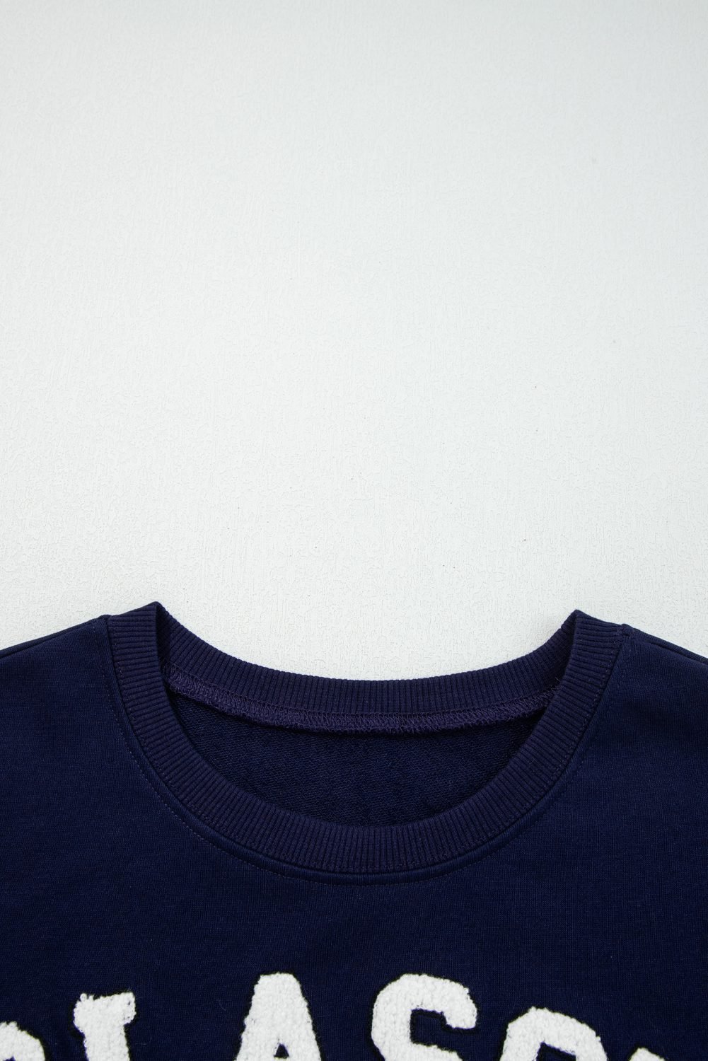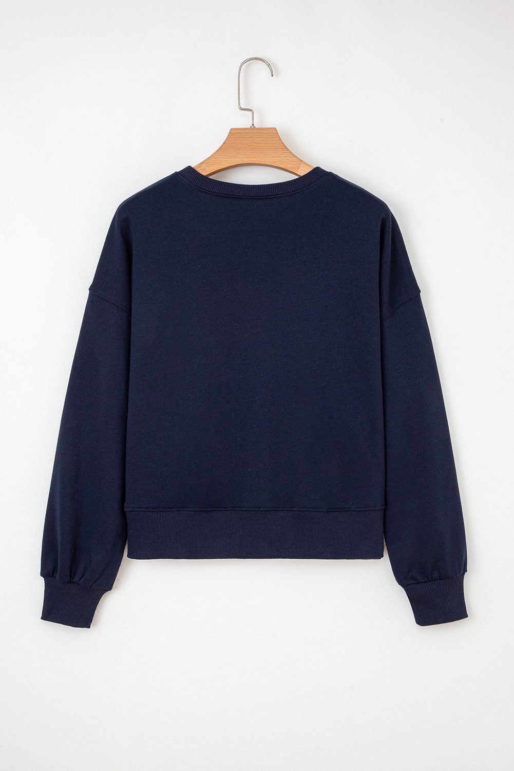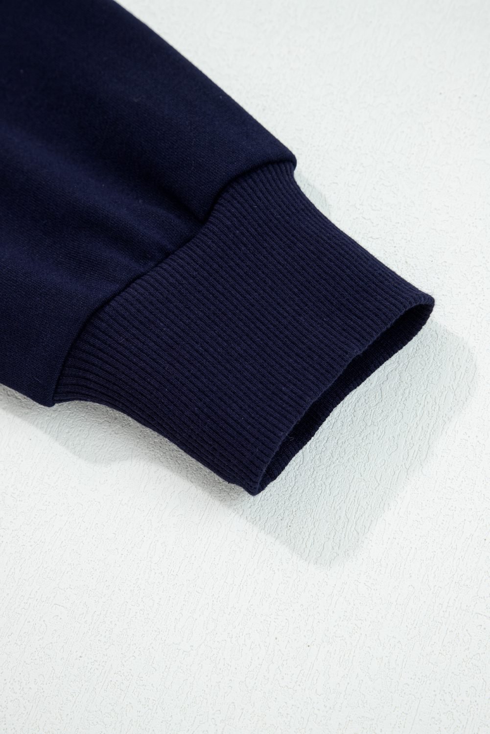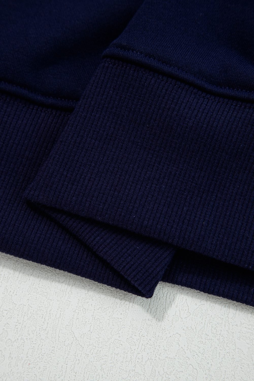 Navy Blue Classy Until Kickoff Plush Letter Patched Loose Sweatshirt