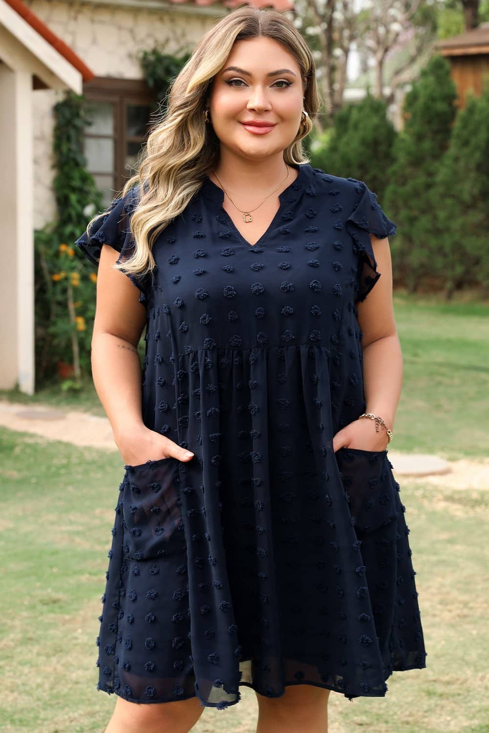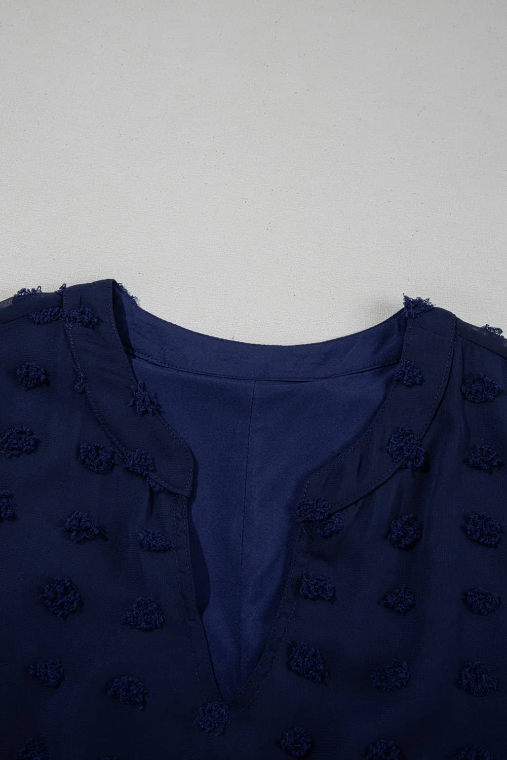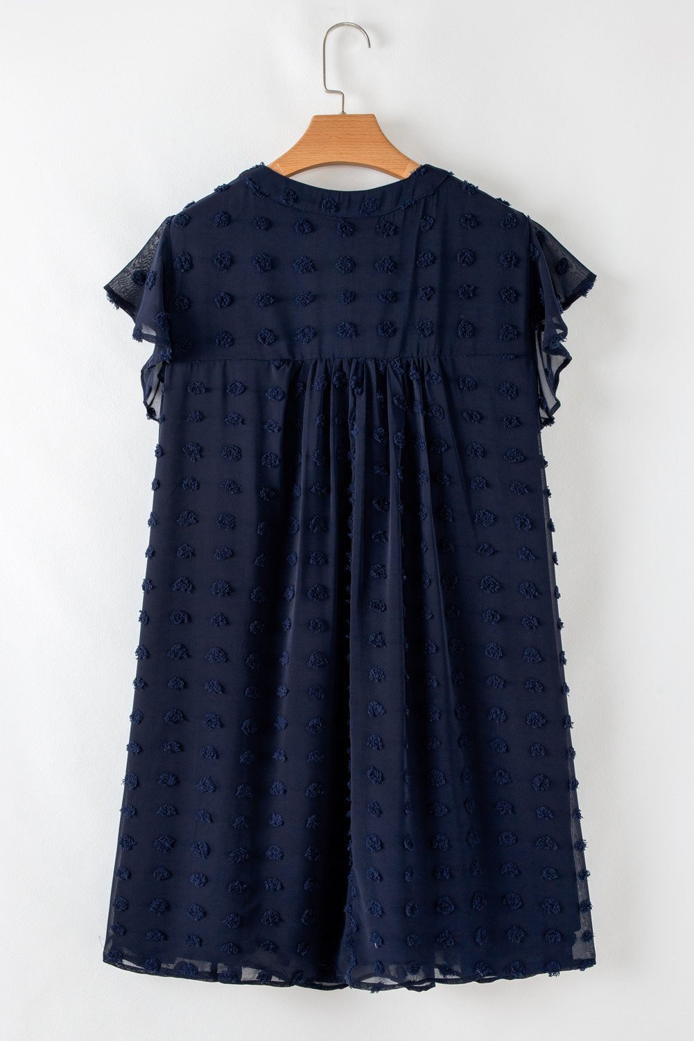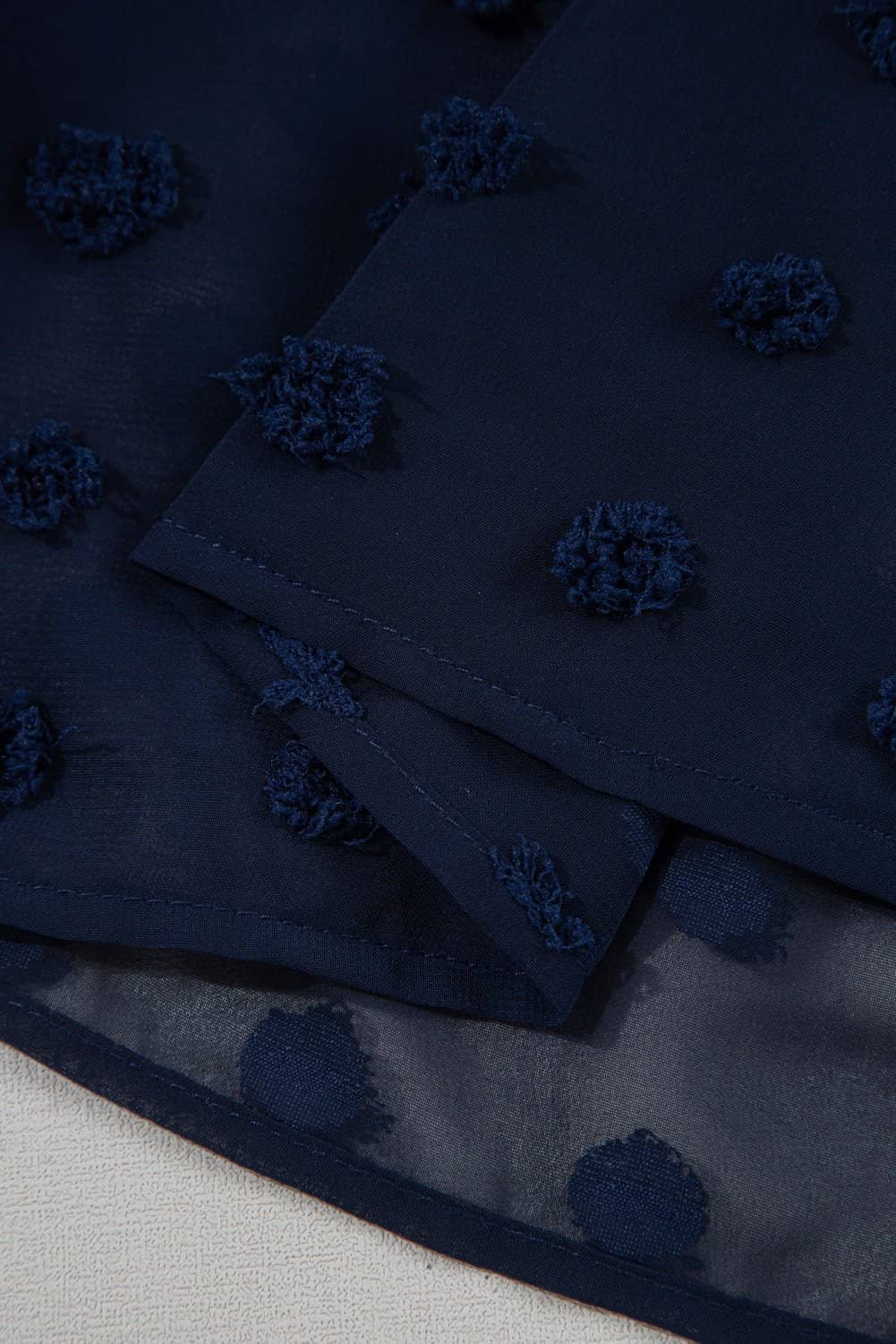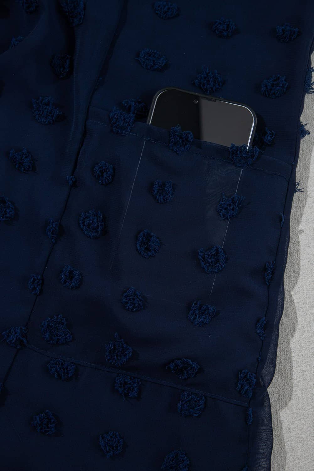 - Polka dot texture adds a playful and timeless touch to the dress.