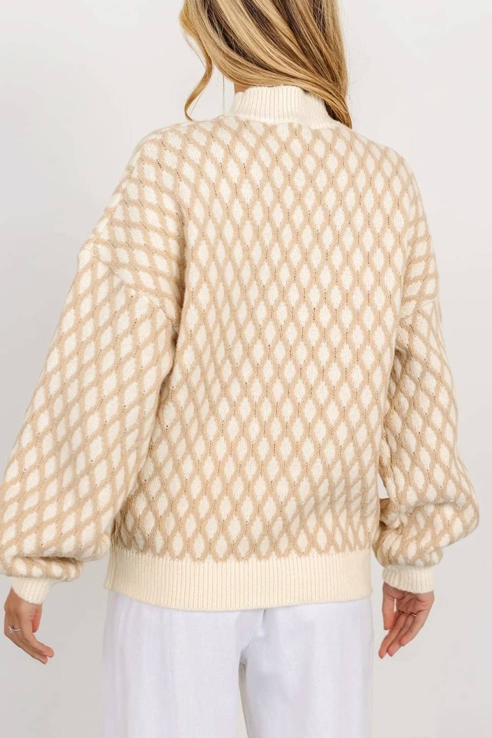 Oatmeal Diamond Knit Drop Shoulder Loose Sweater