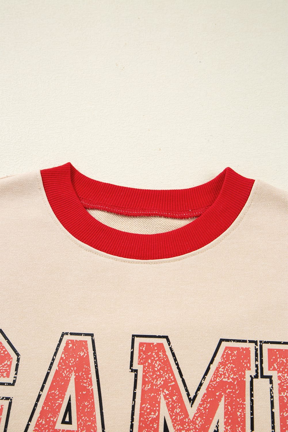 Oatmeal Game Day Letter Graphic Varsity Striped Detail Baggy Sweatshirt