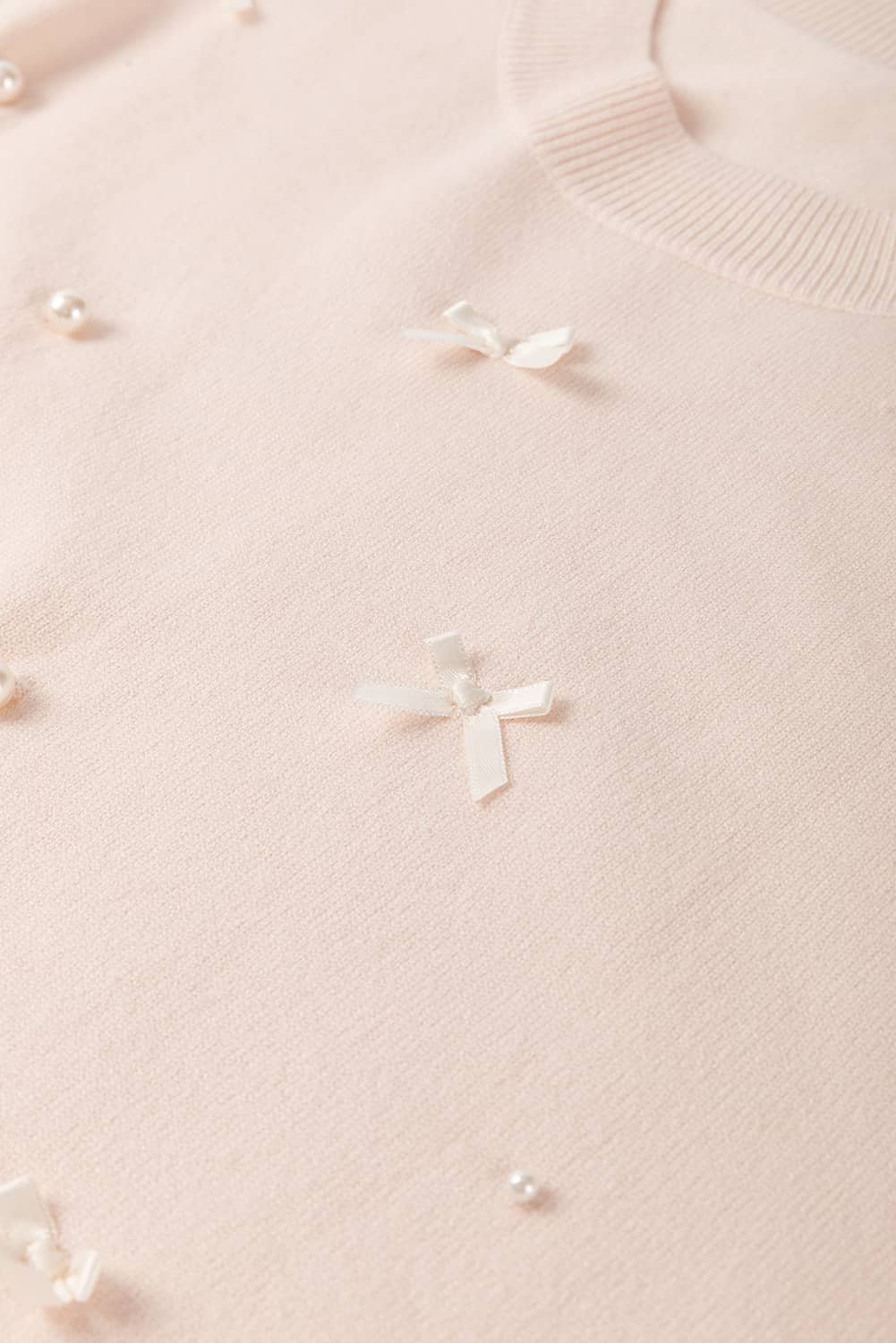 It has a ribbed round neck, short dolman sleeves, and a loose fit.