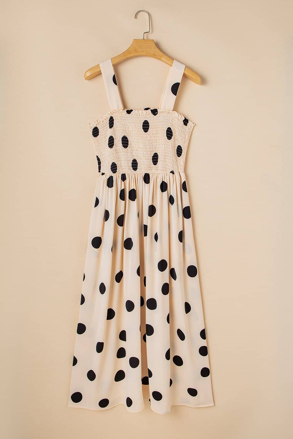 - The polka dot pattern educes this flowy dress an elegant flair.