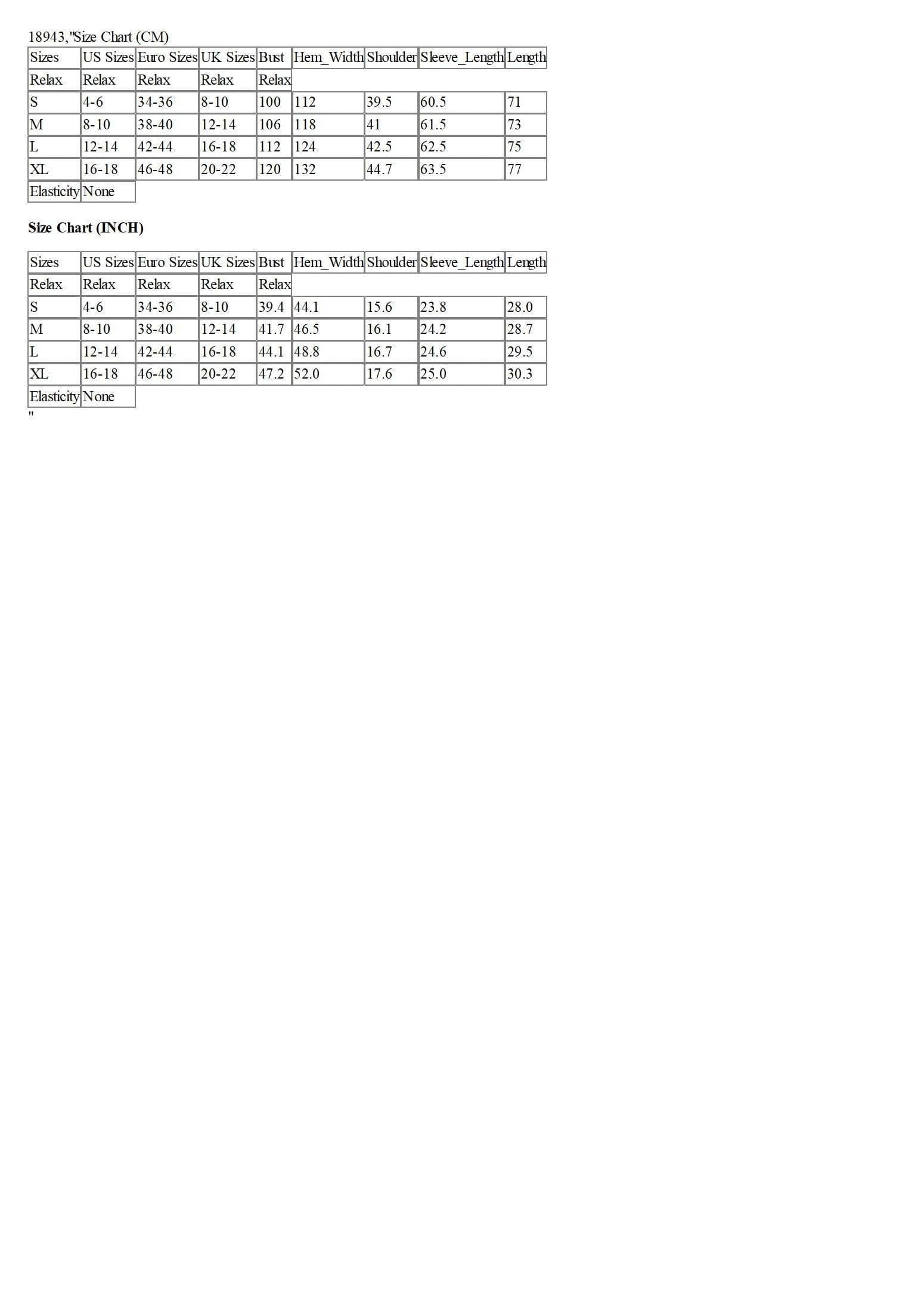 Size Chart (CM)
