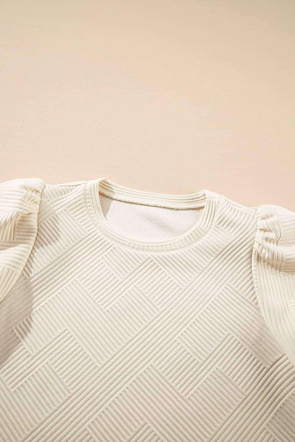 Oatmeal Textured Puff Sleeve T-Shirt