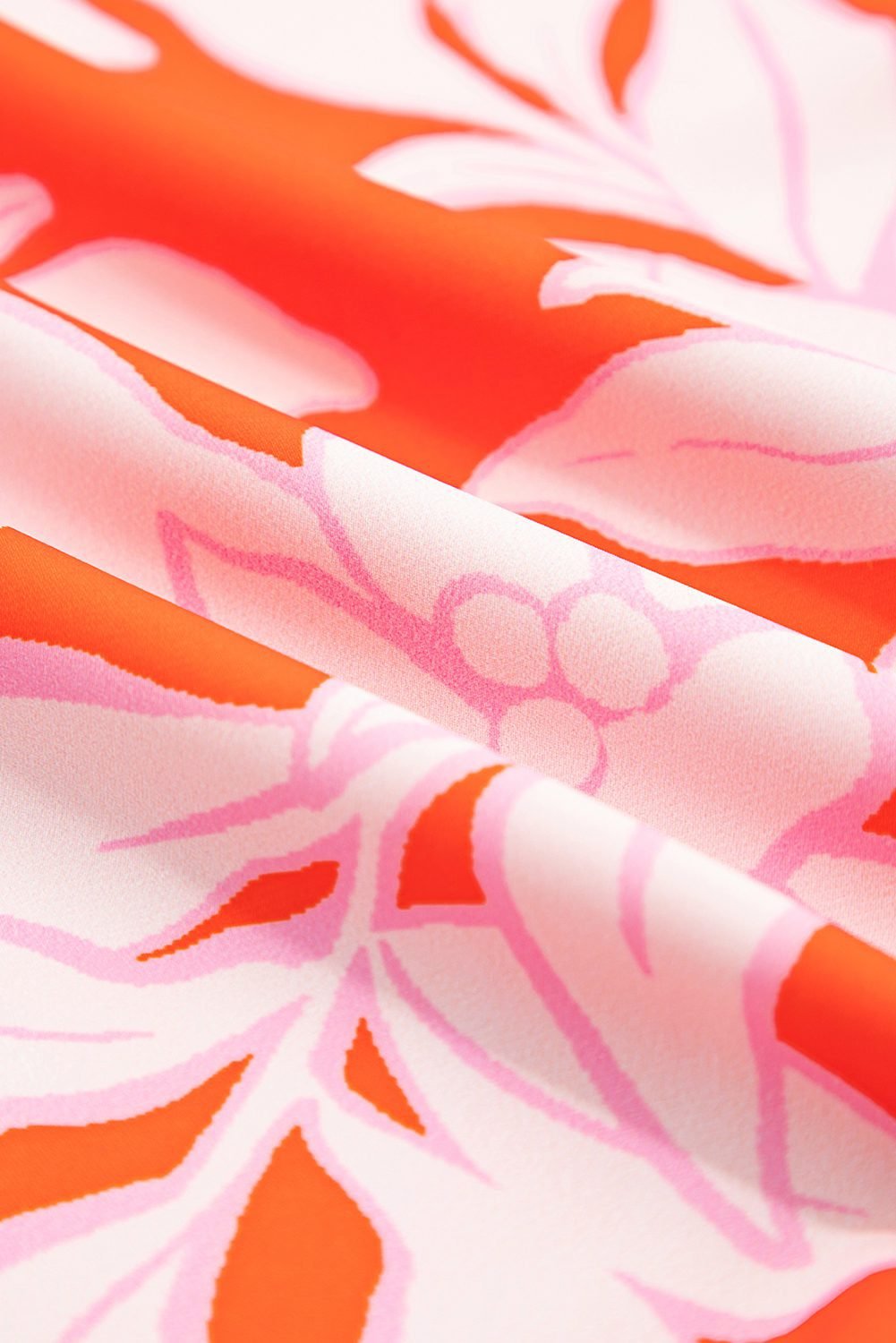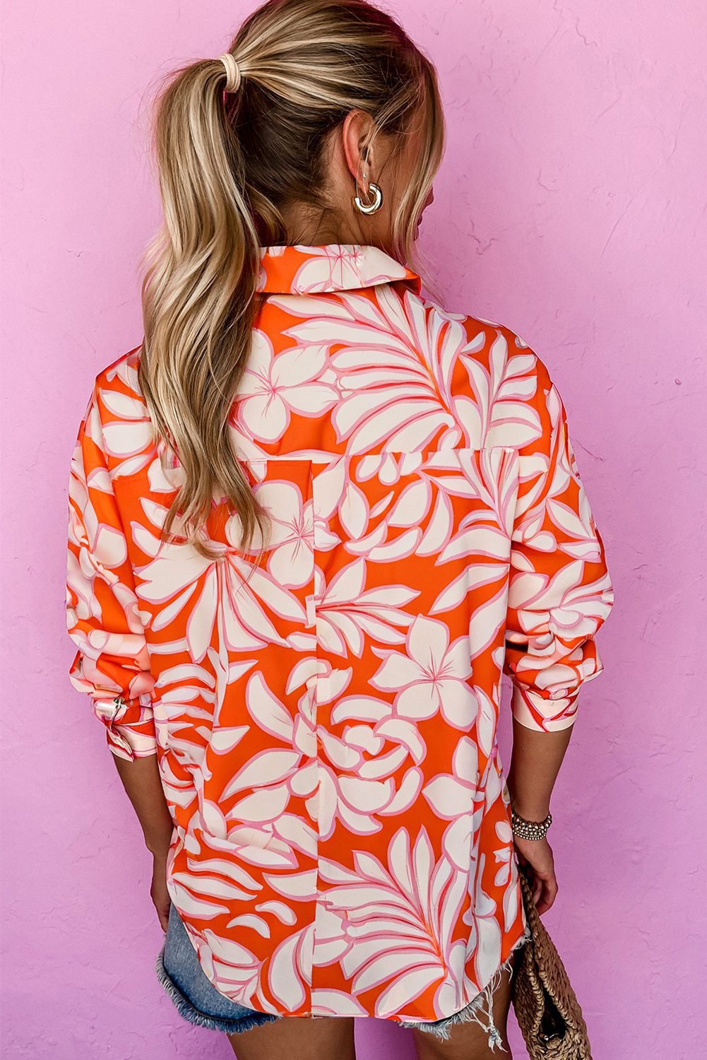 Orange Botanical Print Single Chest Pocket Button Up Shirt
