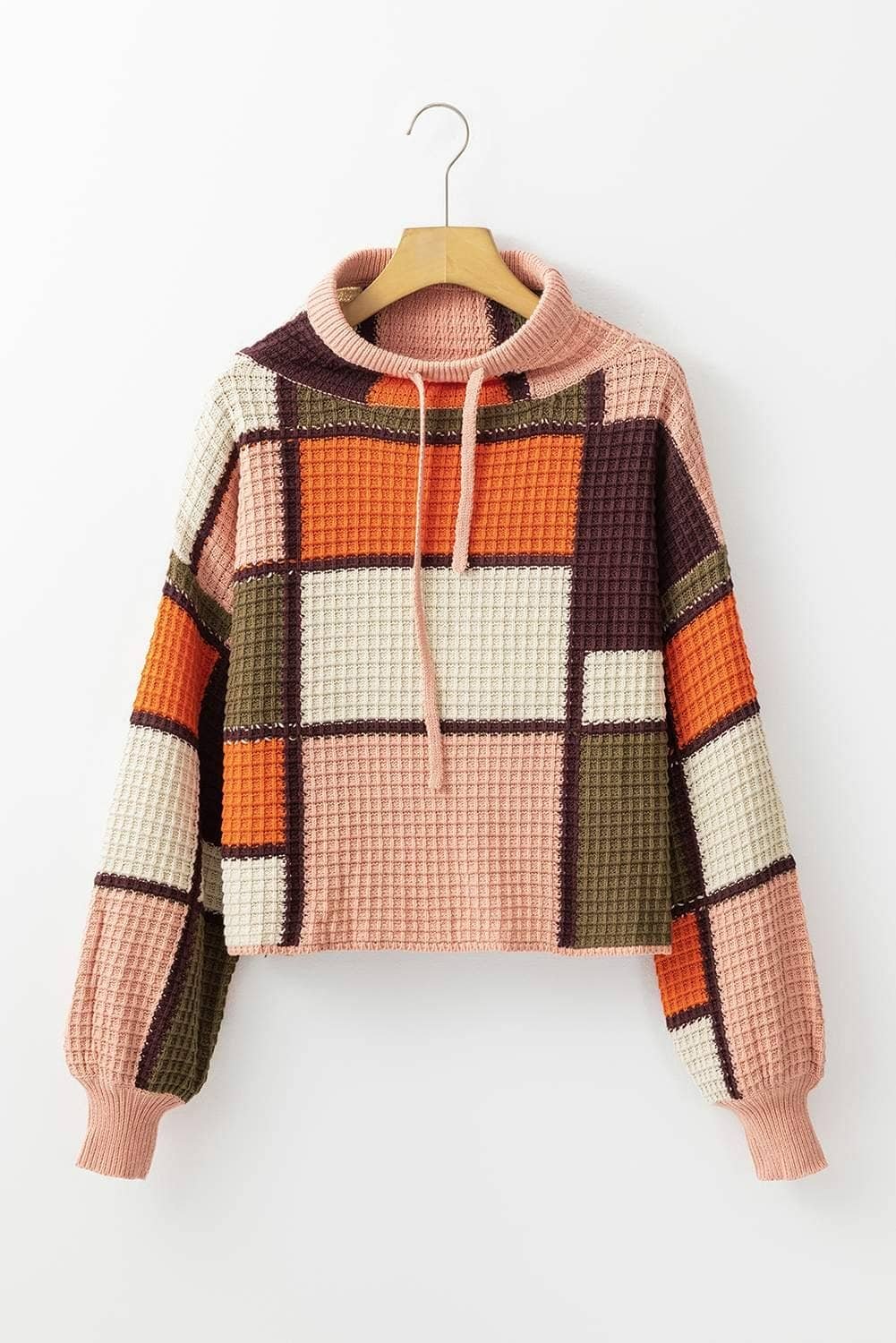 - Stay cozy and stylish with this trendy color block sweater.