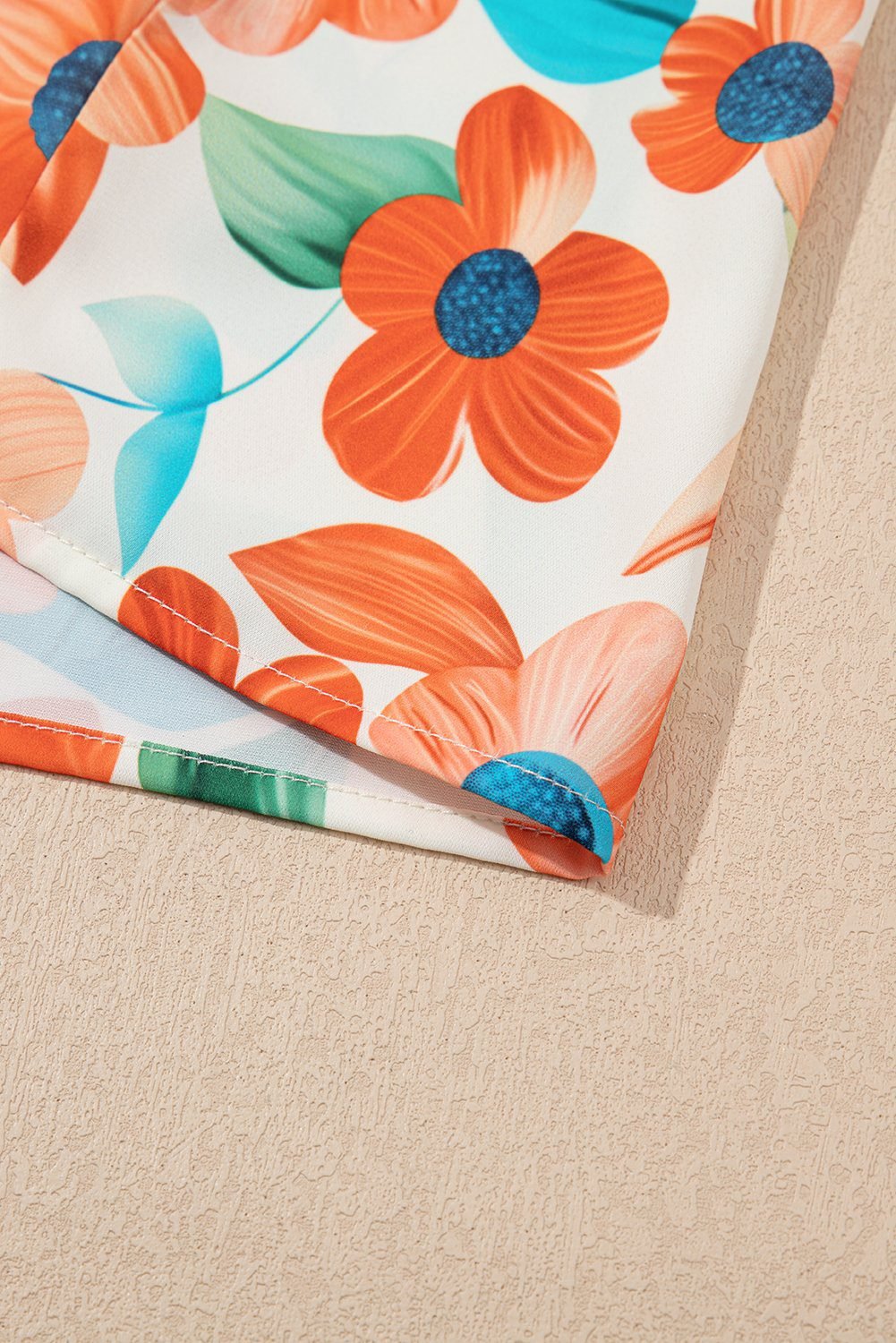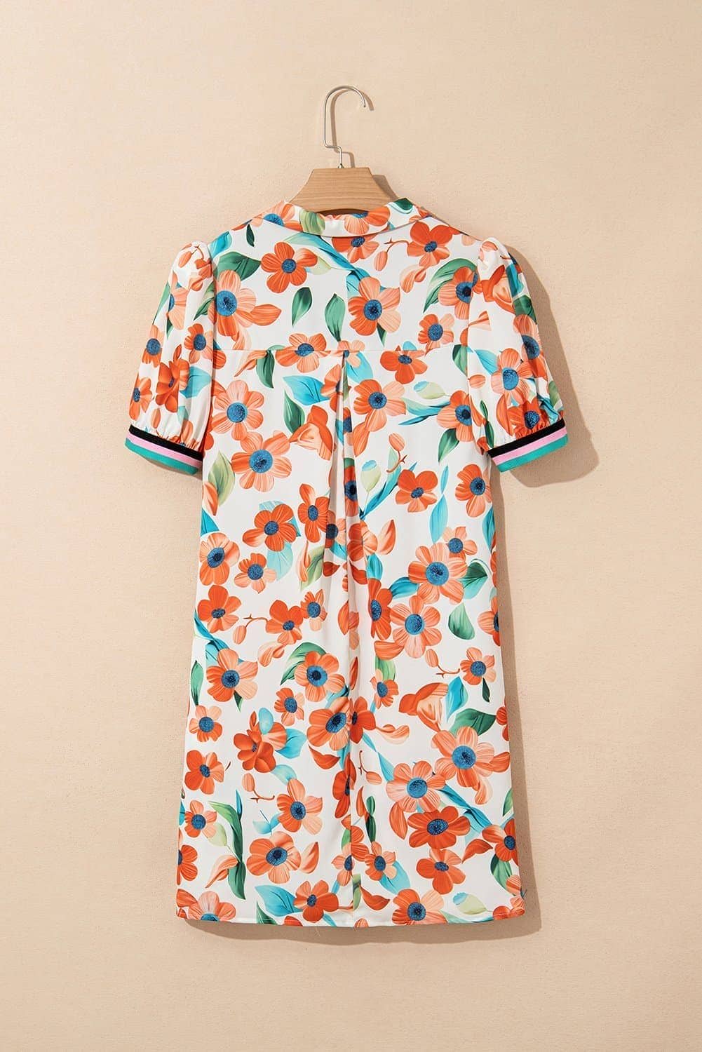 Be the first to review “Orange Contrast Trim Floral Split Neck Puff Short Sleeve Tiered Mini Dress”