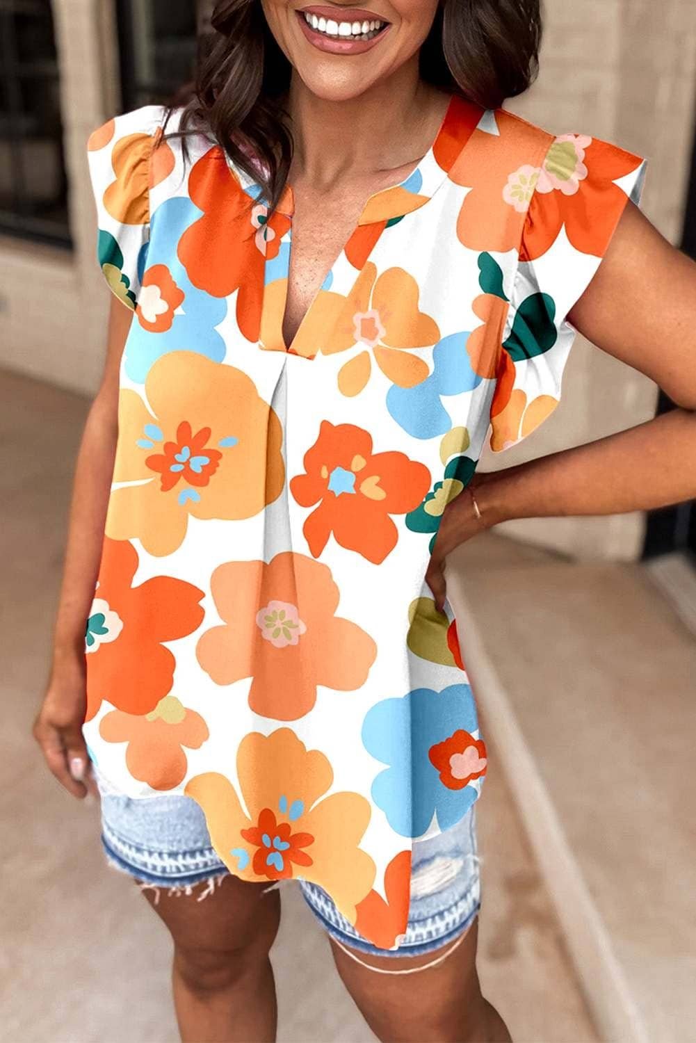 - This floral blouse is sweet and graceful