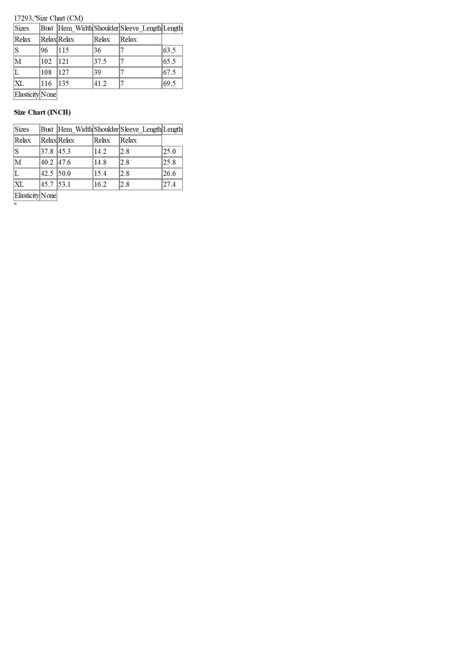 Size Chart (CM)