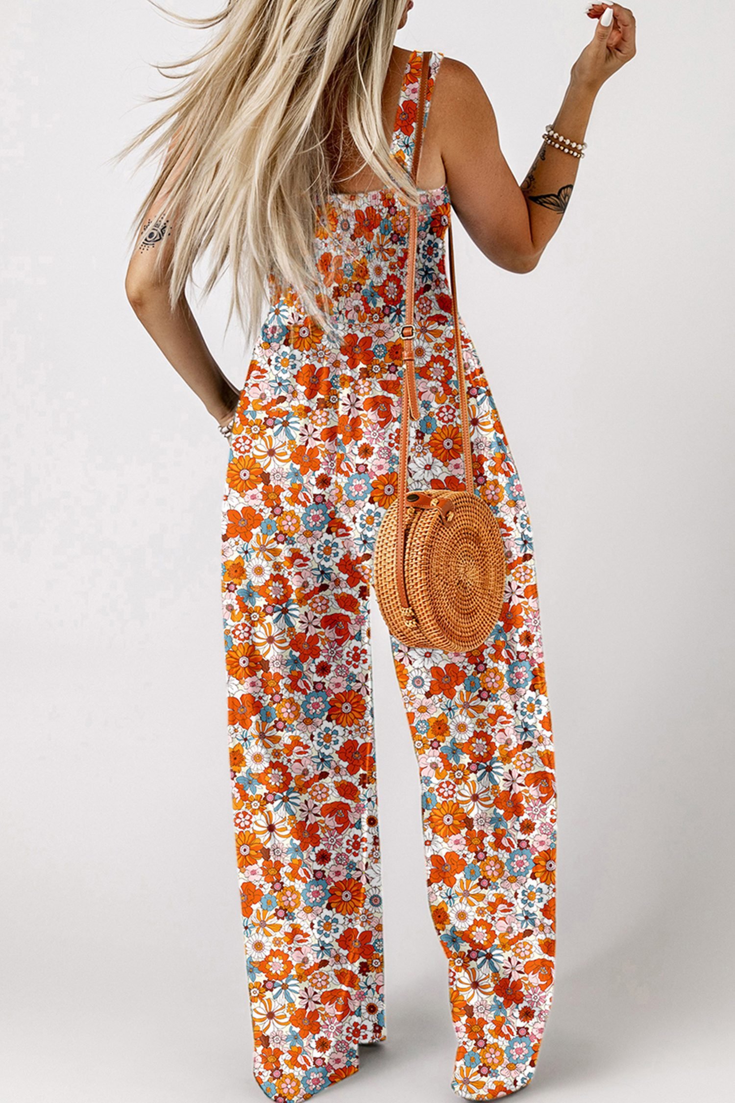 The floral jumpsuit is perfect for summer vacations and daily.
