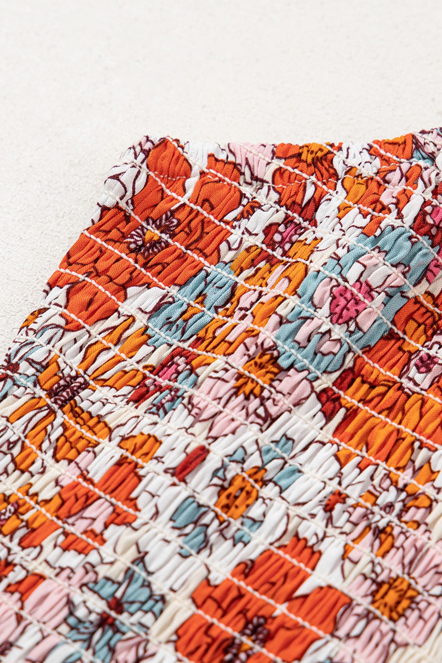 A smocked bodice combines shift legs to flatter curves effortlessly.