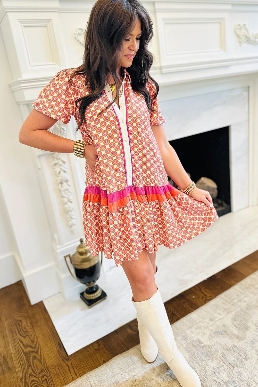 Get ready to bloom in style with this geometric print dress.