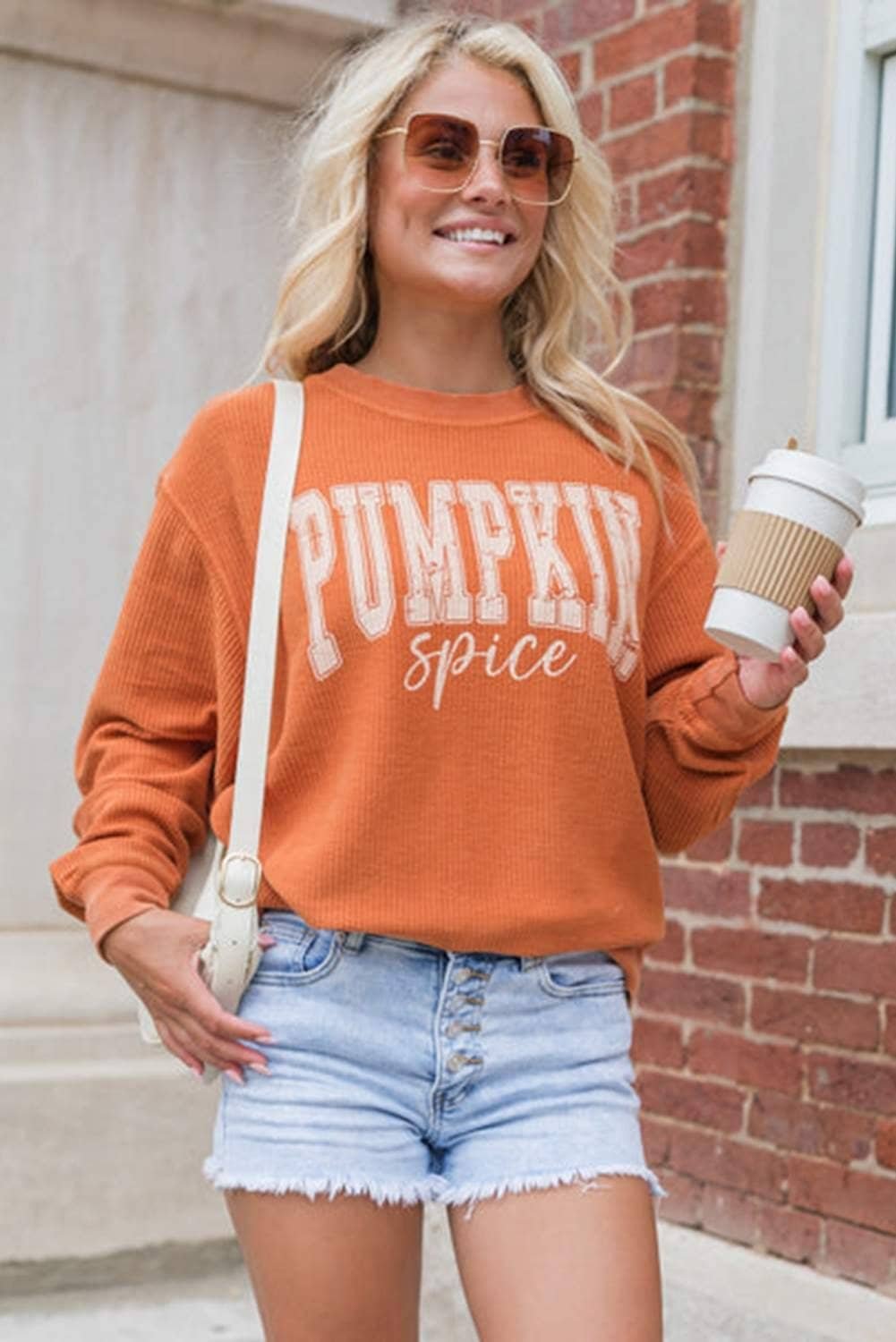 - Make a bold statement with this standout “PUMPKIN” lettering sweatshirt.