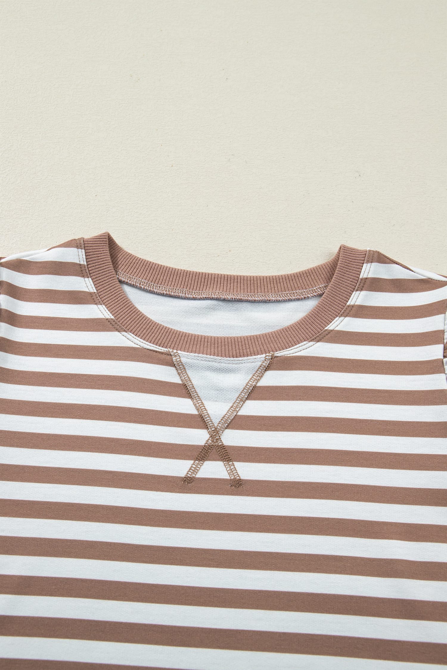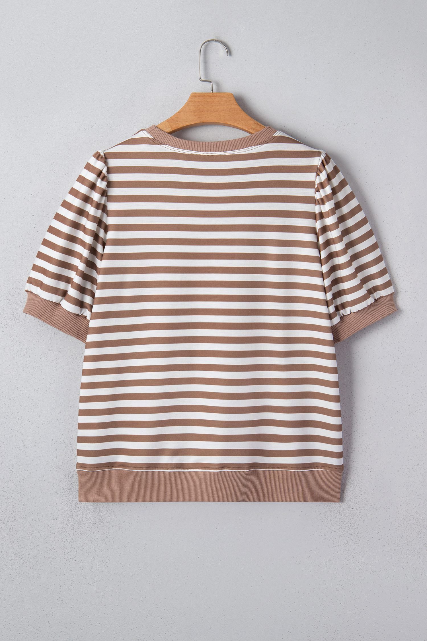 Striped T shirt features a classic pattern with playful short bubble sleeves.