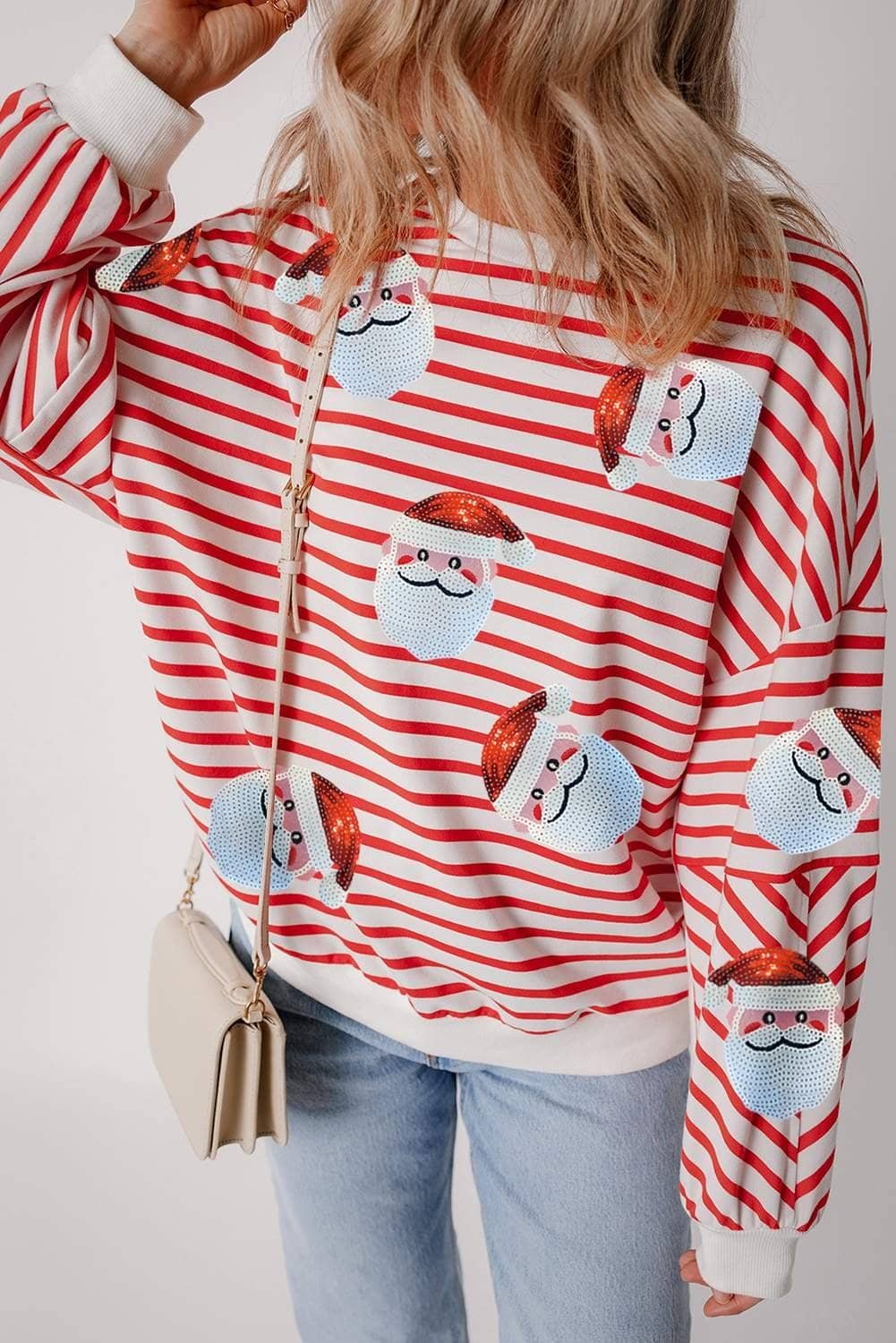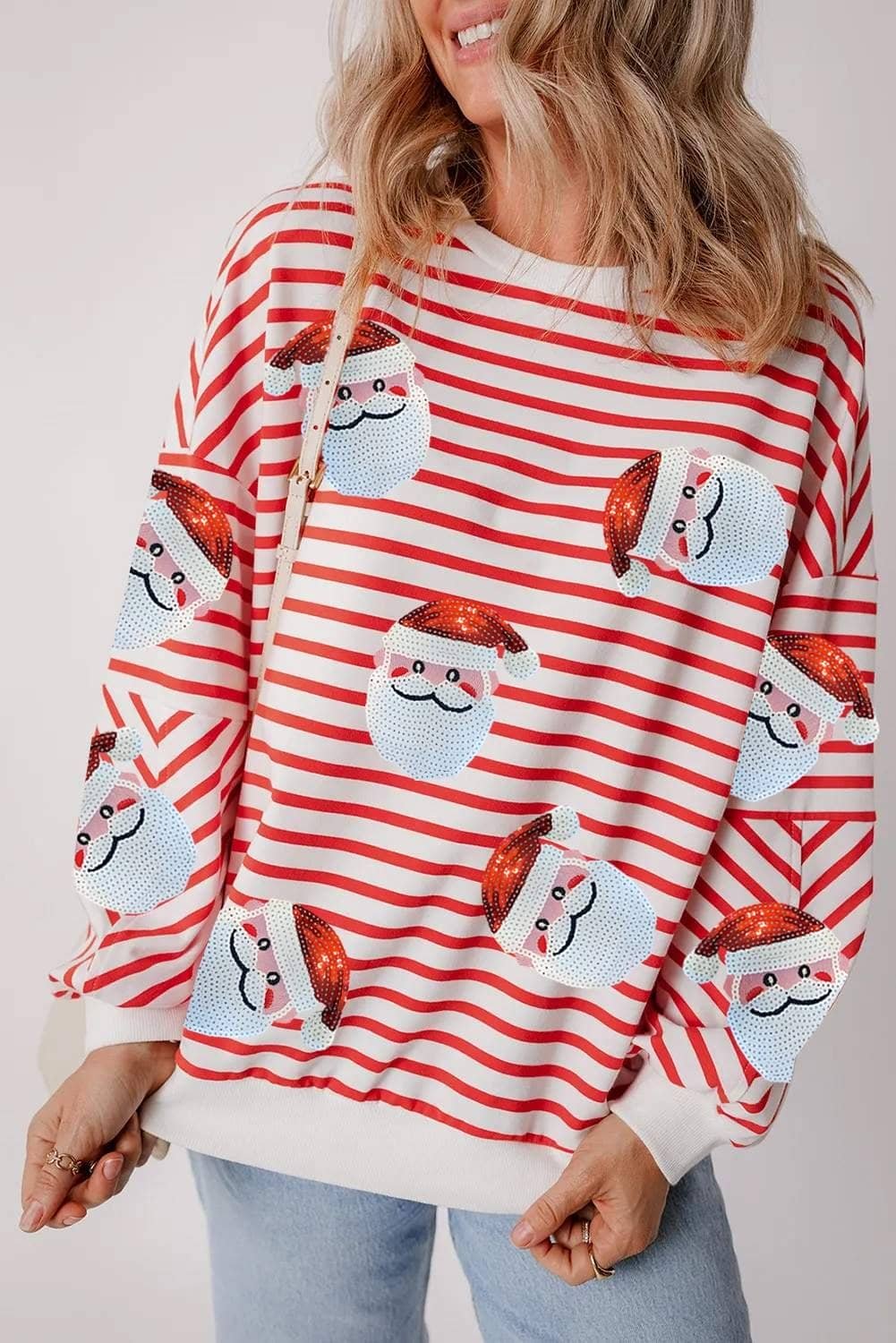 Festive Santa Claus patterns with shimmering sequins.