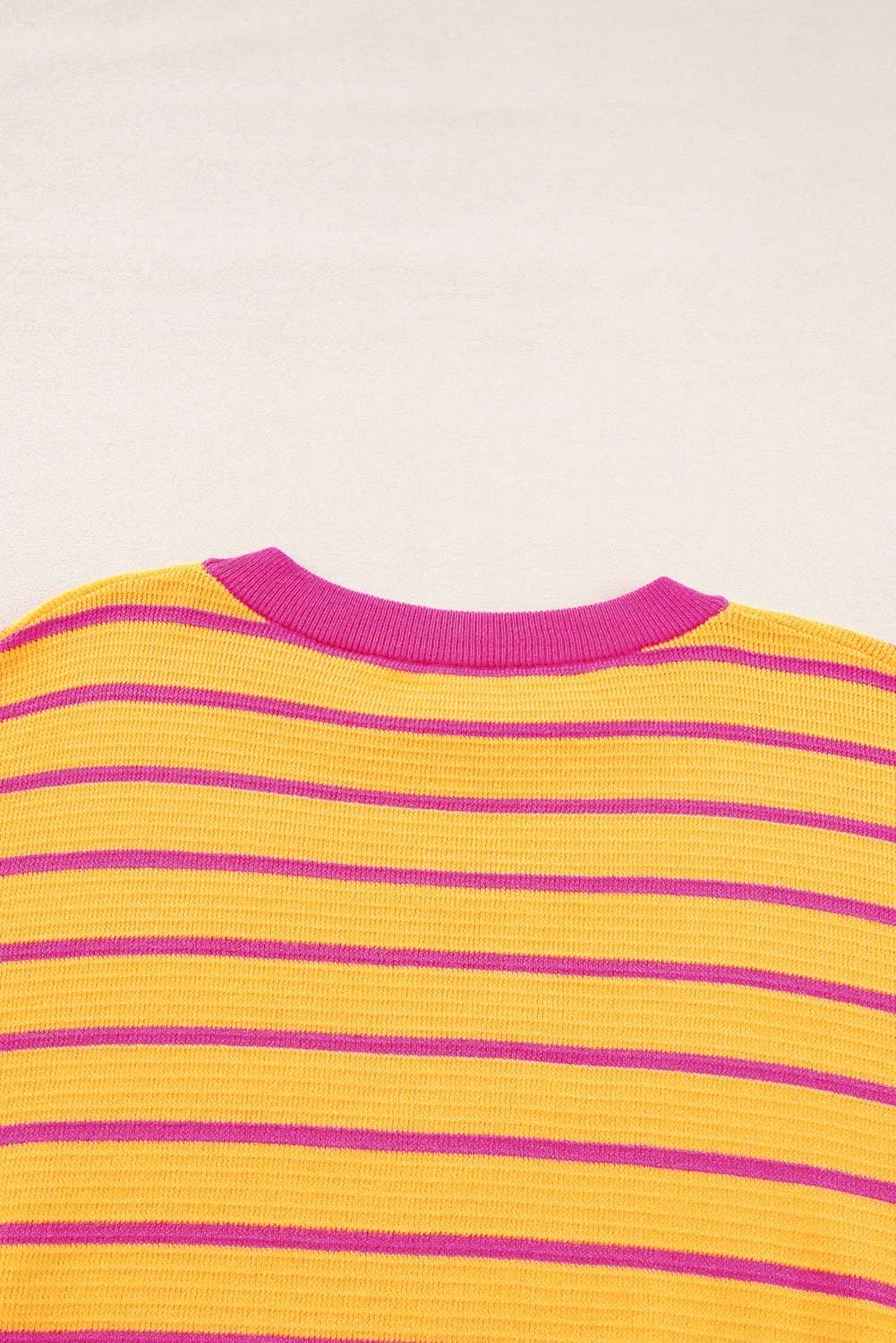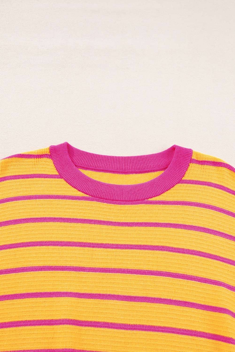 Be the first to review “Orange Stripe Trimmed Round Neck Drop Shoulder Loose Sweater”