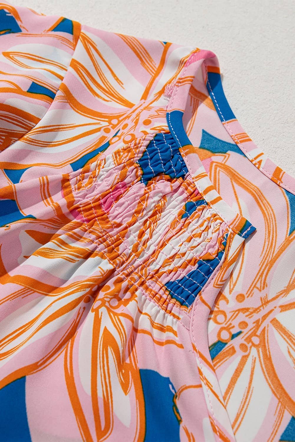 - Features a vibrant summer flower print.
